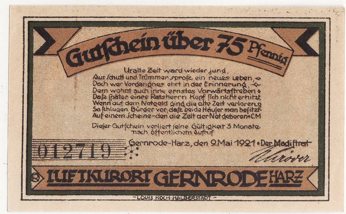 Germany 75pf.1921m.notg.143-1