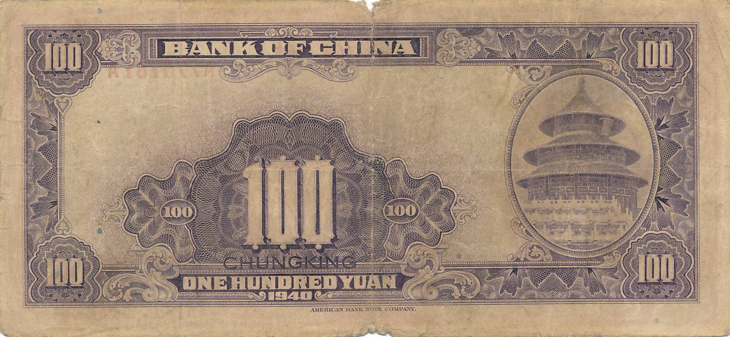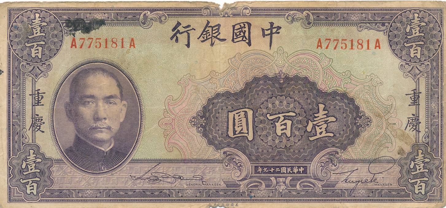 Kinija - 1940 - 100 juaniu - nuo euro