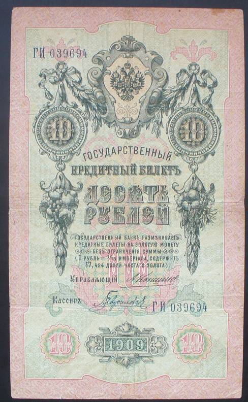Rusija 1909 10 RUBLIŲ P11b(5)......5734