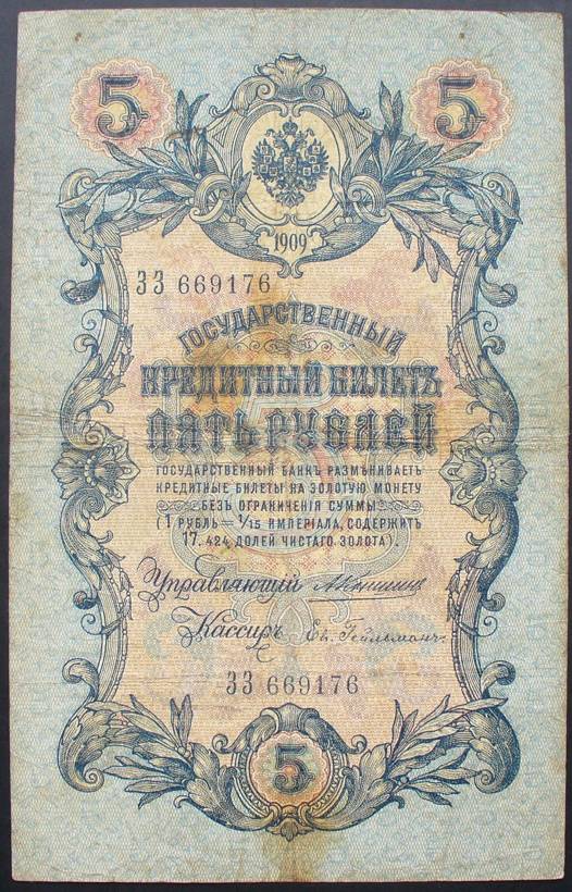 Rusija 1909 5 RUBLIAI P10a(9).....5762