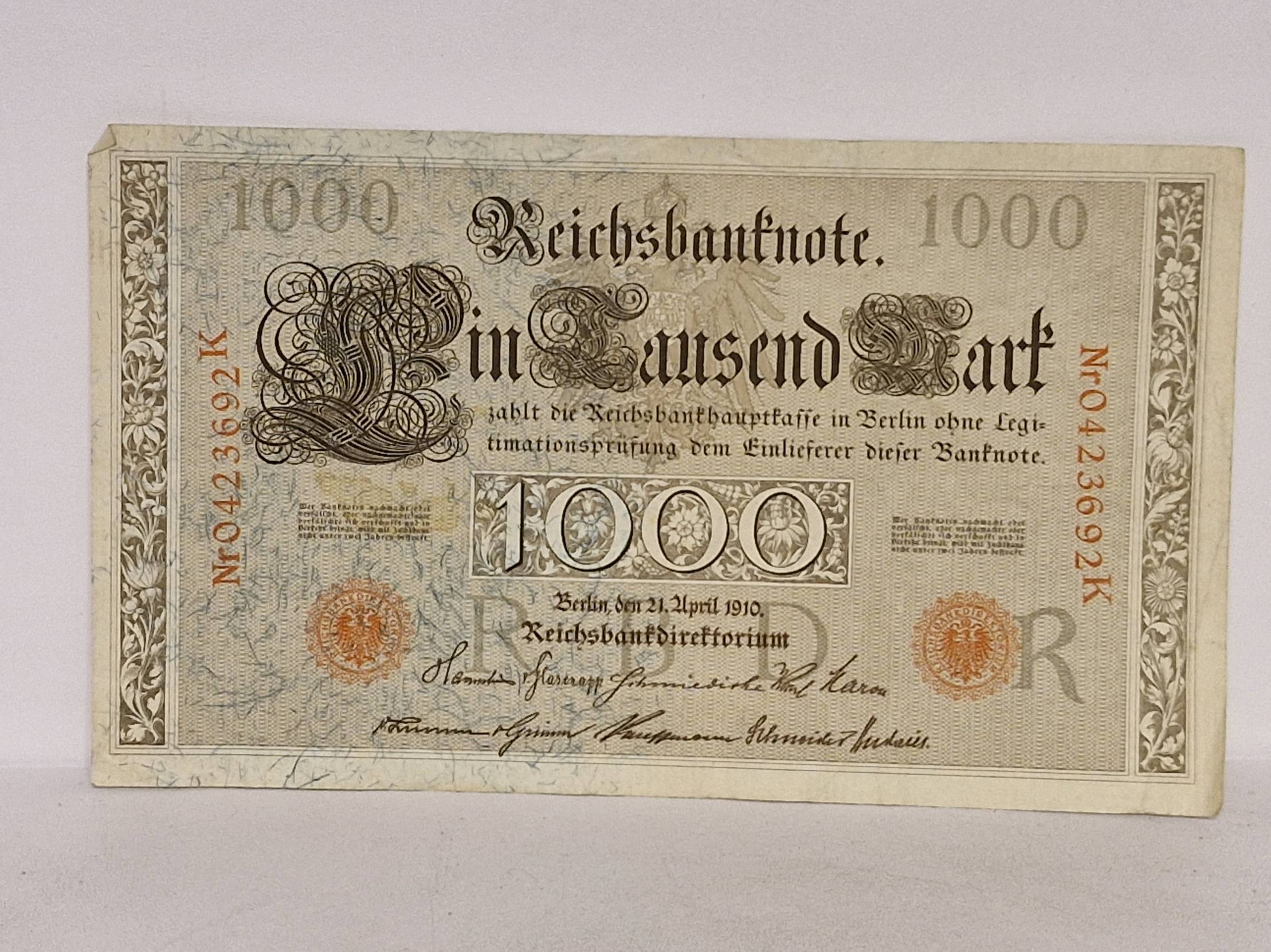 1910, Germany, reichsmark, 1000