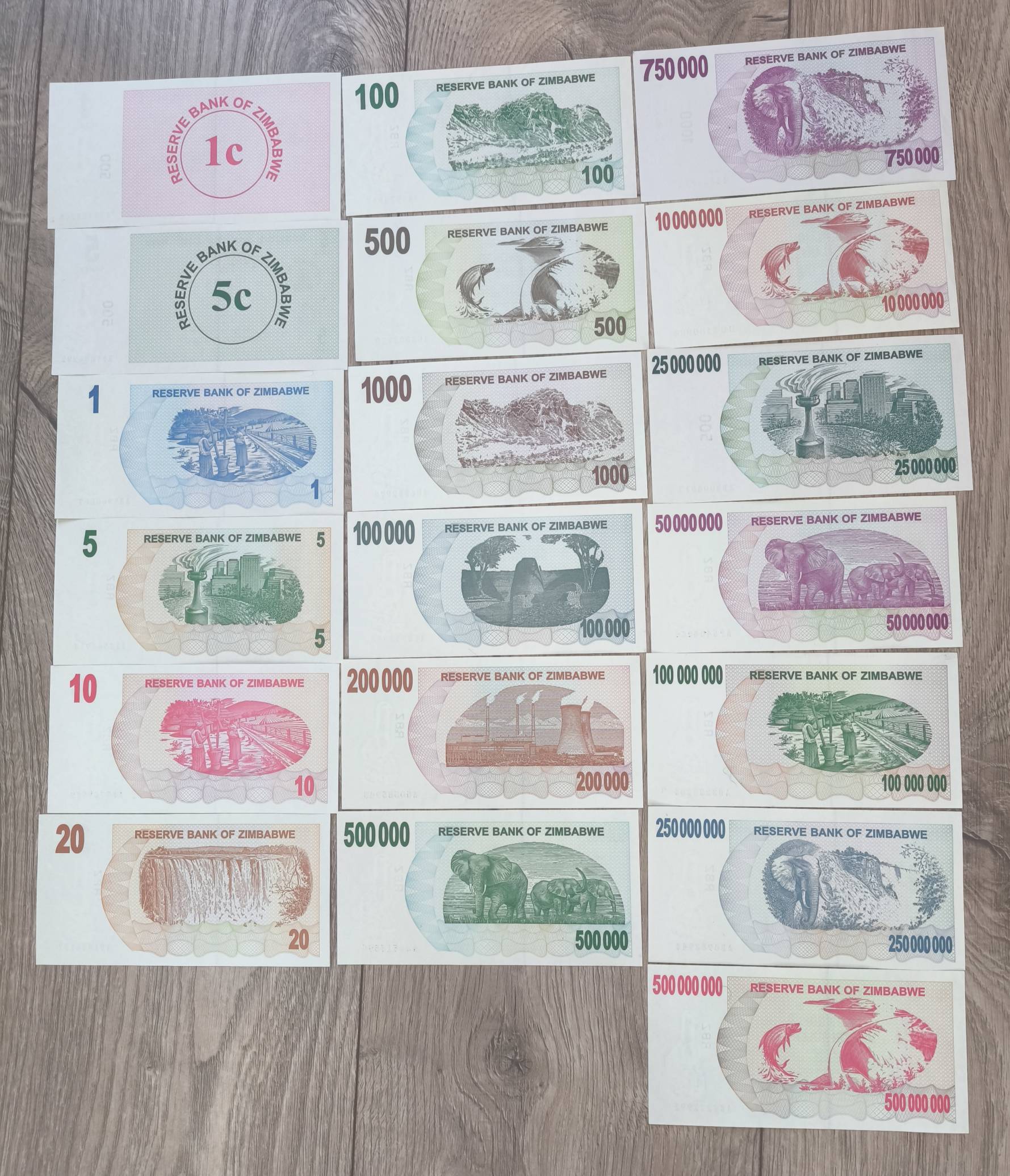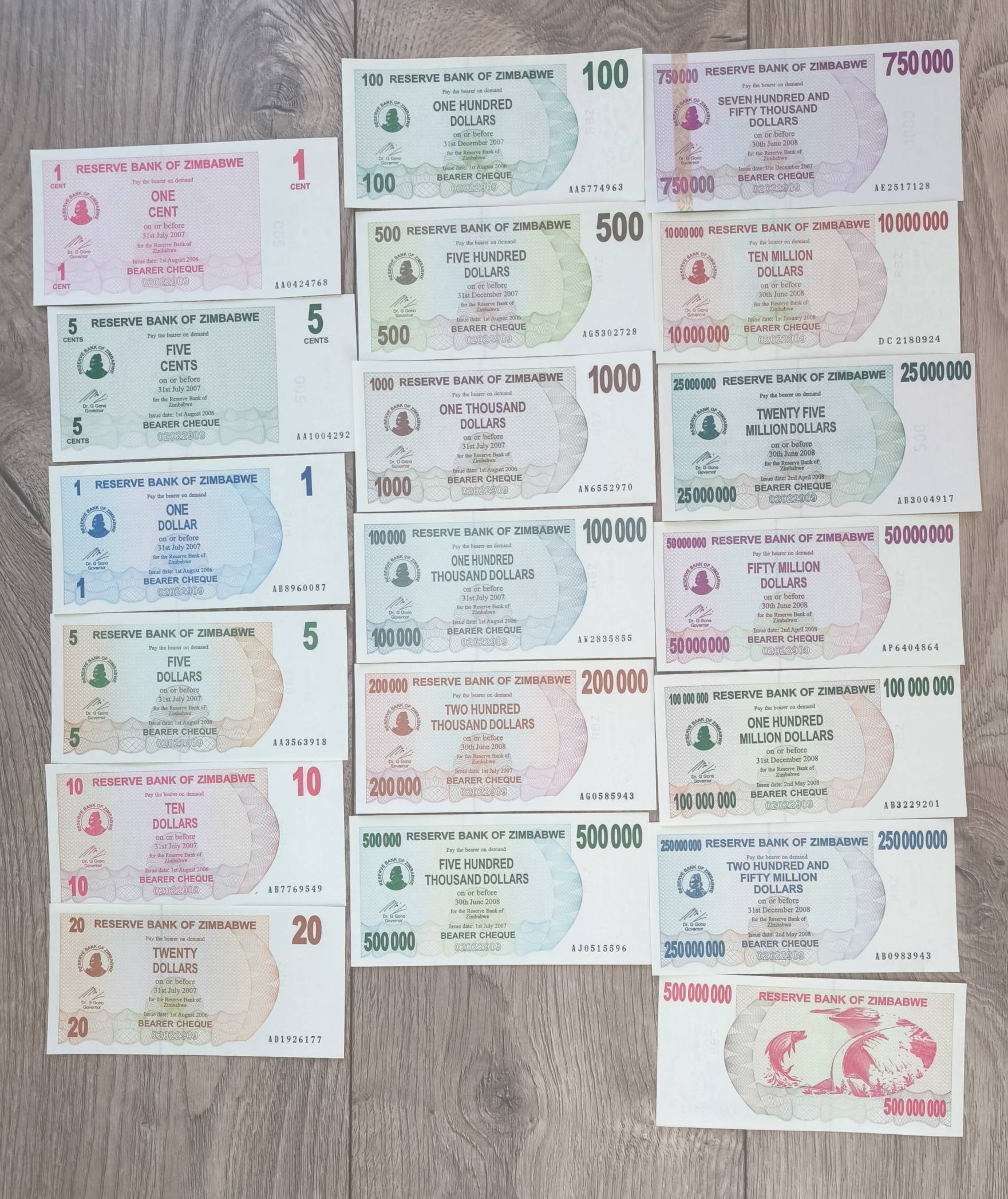 Zimbabwe. 19vnt.banknotų. 2007-2008m.