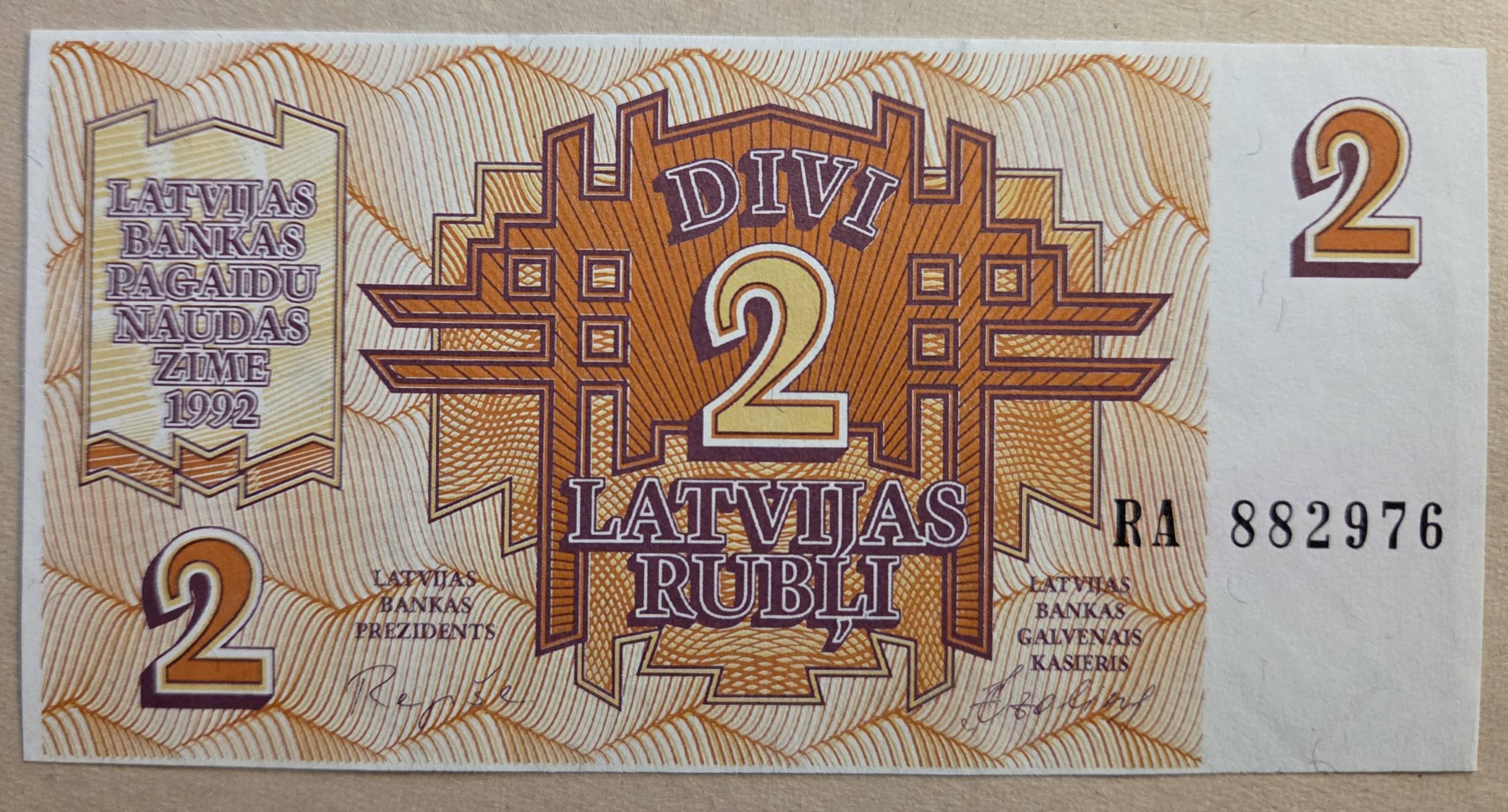 2 Latvijos rubliai 1992 m. UNC - Nuo 1 Eur