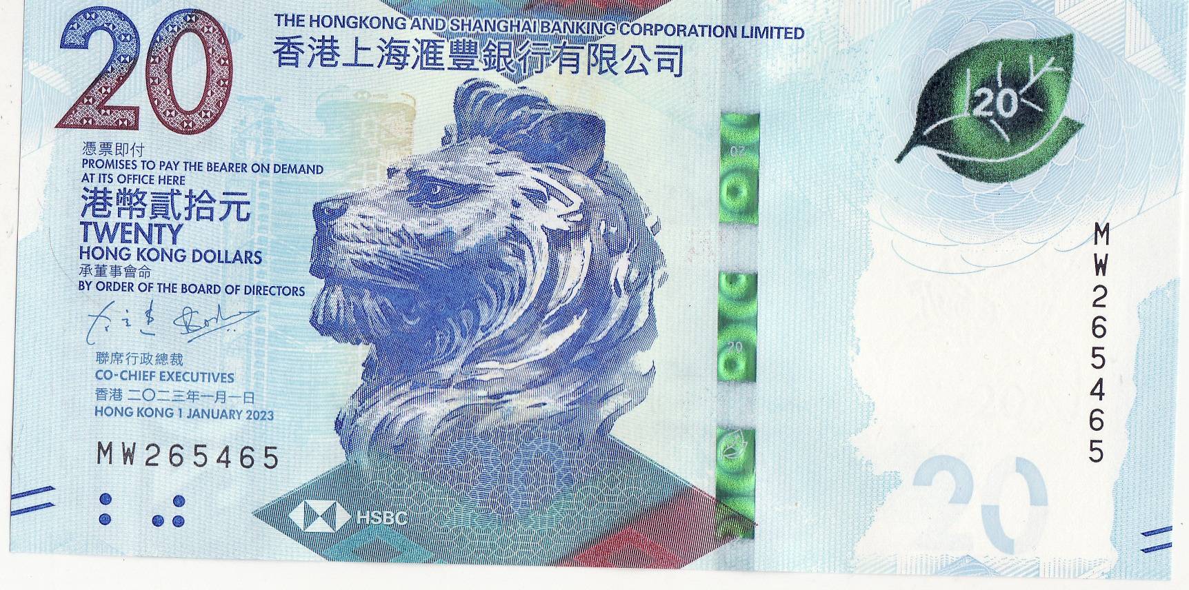 Hong Kong 20dol.2023m.PW218