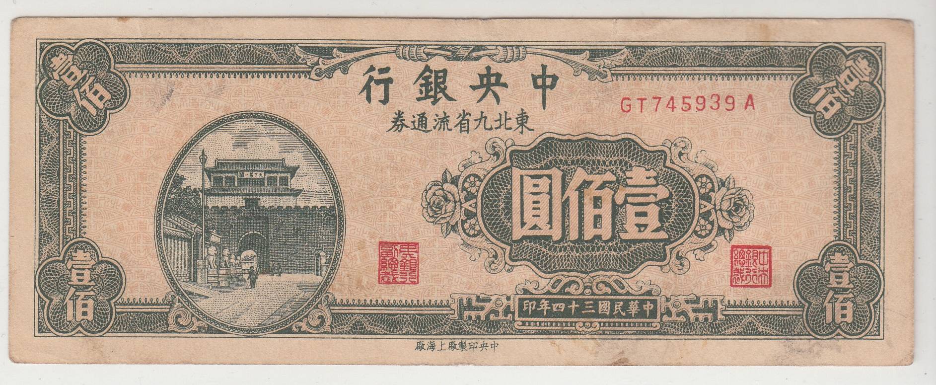 Kinija_100 juanių_1945m_ nuo 1€ !