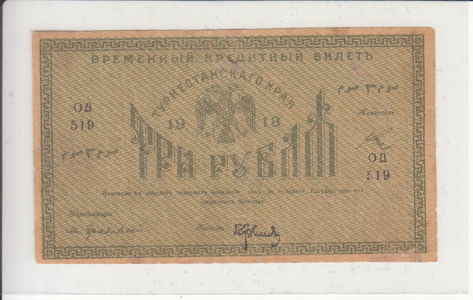Rusija / Turkistanas_3 rubliai_1919m_ nuo 1€ !