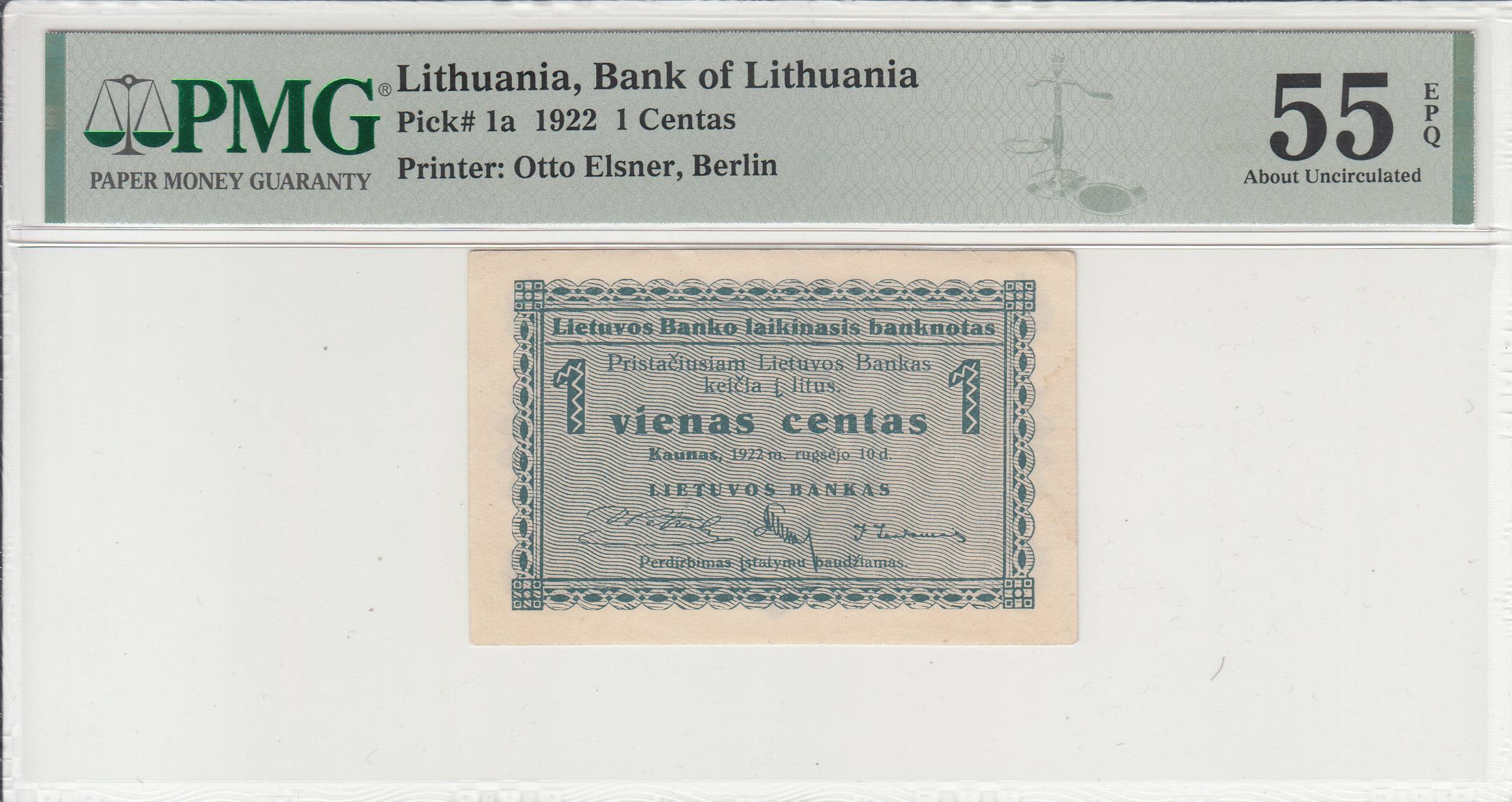 Lietuva_1 centas_1922m rugsėjis_PMG55_nuo 1€ !
