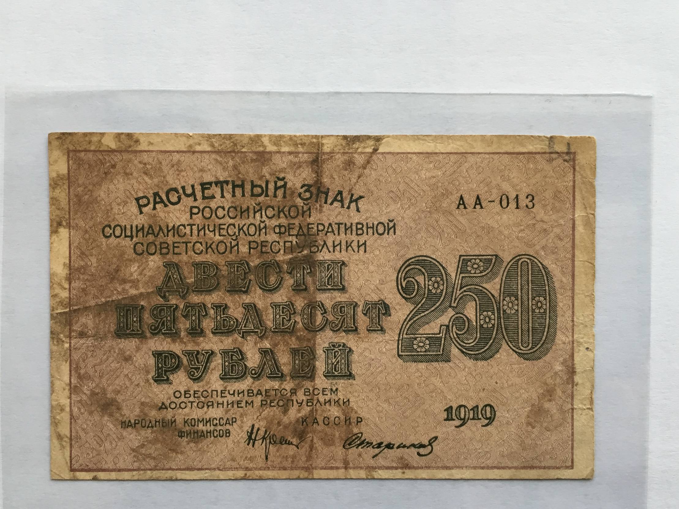 Rusija 250 Rub.1919m. Nuo 1 euro