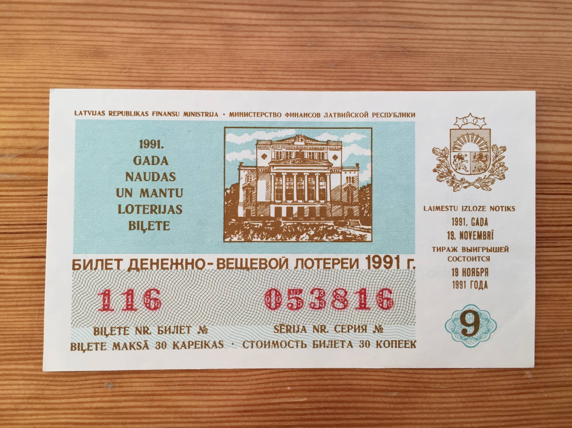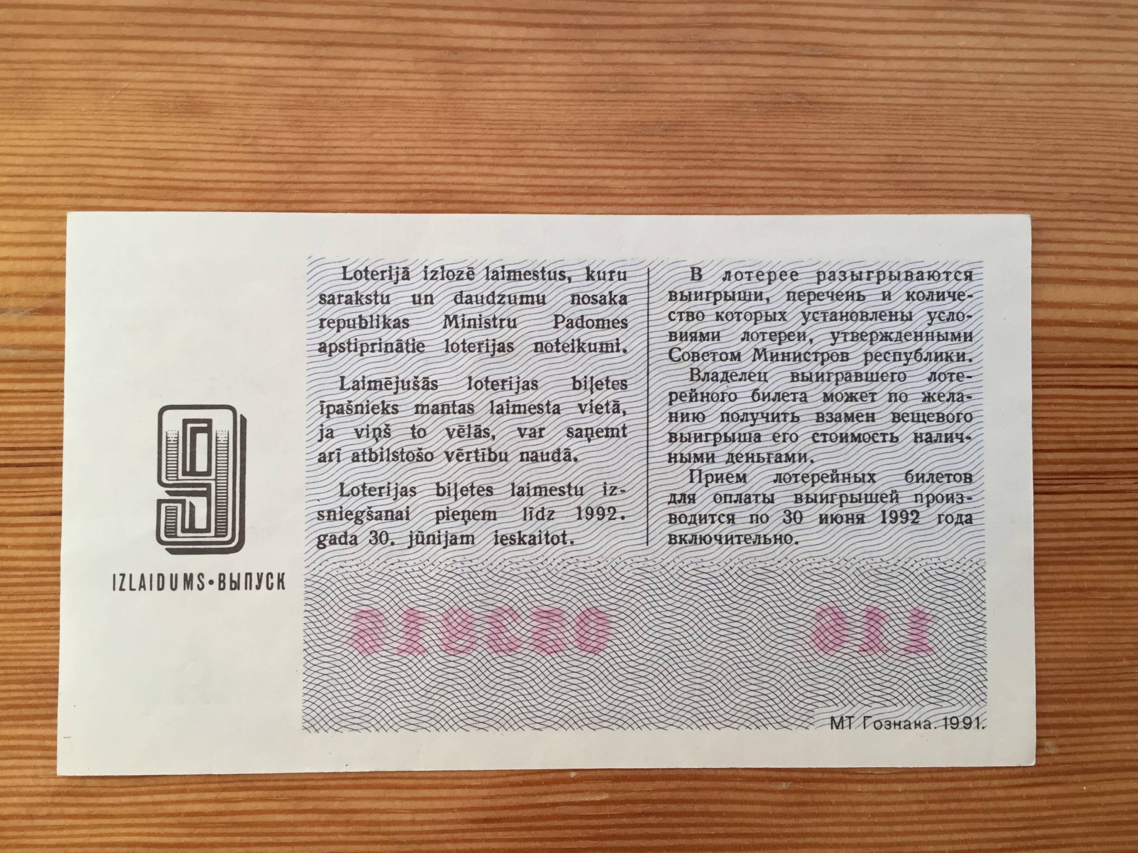 Latvija Loterijos bilietas 1991m.