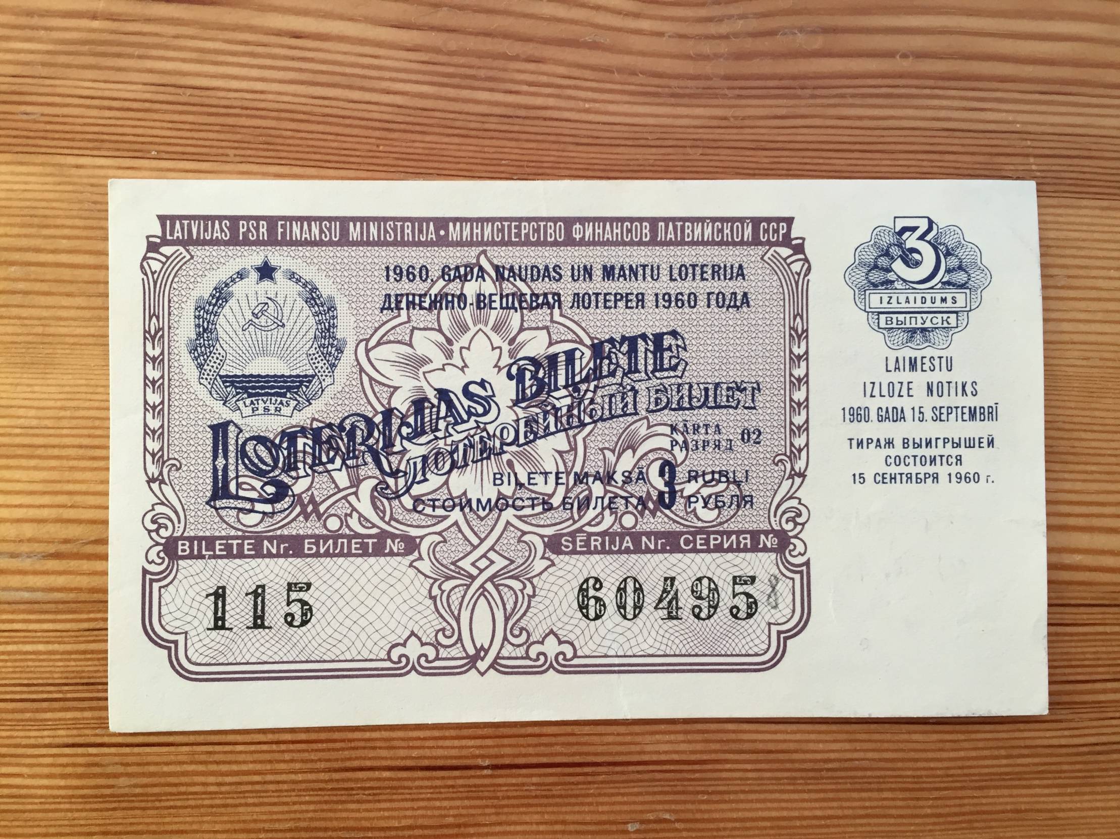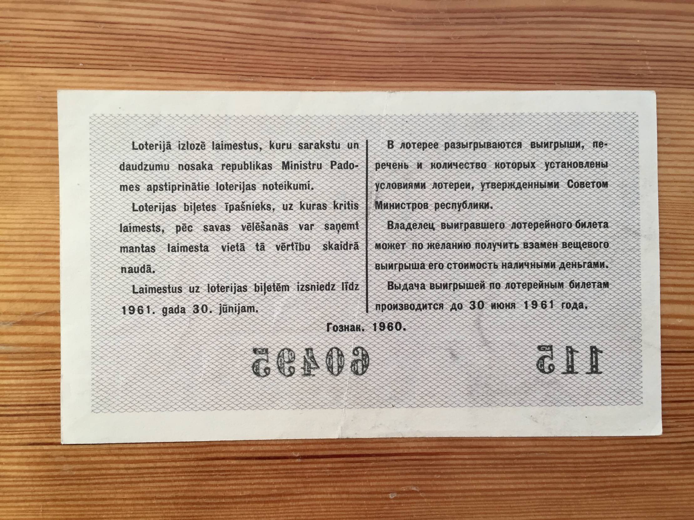Latvija Loterijos bilietas 1960m.