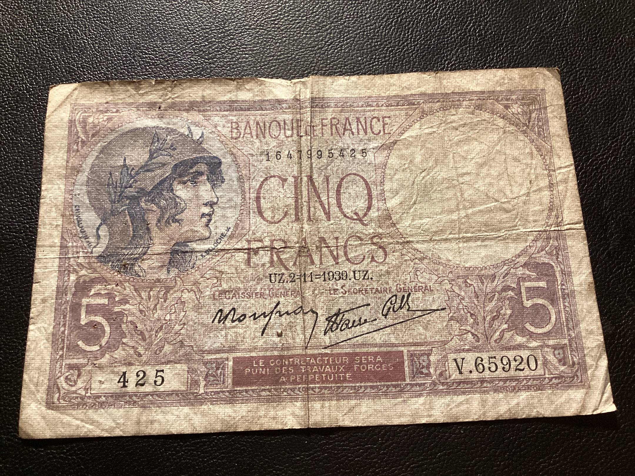 Prancuzija. 5 frankai. 1939