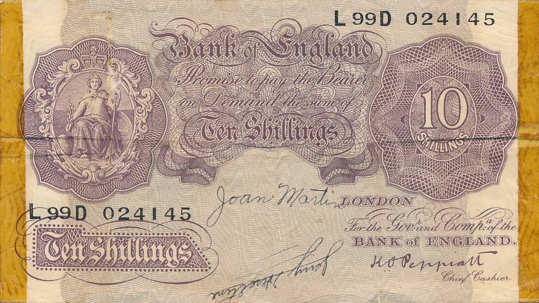 Banknoto scan'as, 100% originalas; suklijuoti kraštai, sugadintas