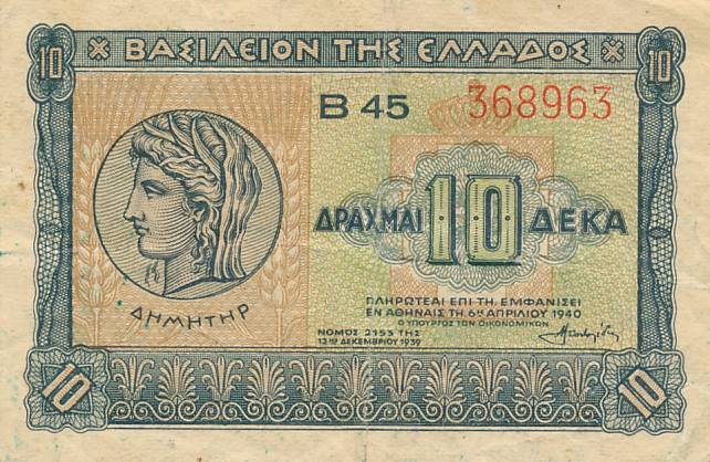 Graikija - 1940 - 10 drachmu - nuo euro
