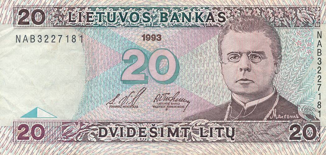 Lietuva - 1993 - 20 litu - Serija: NAB - nuo euro