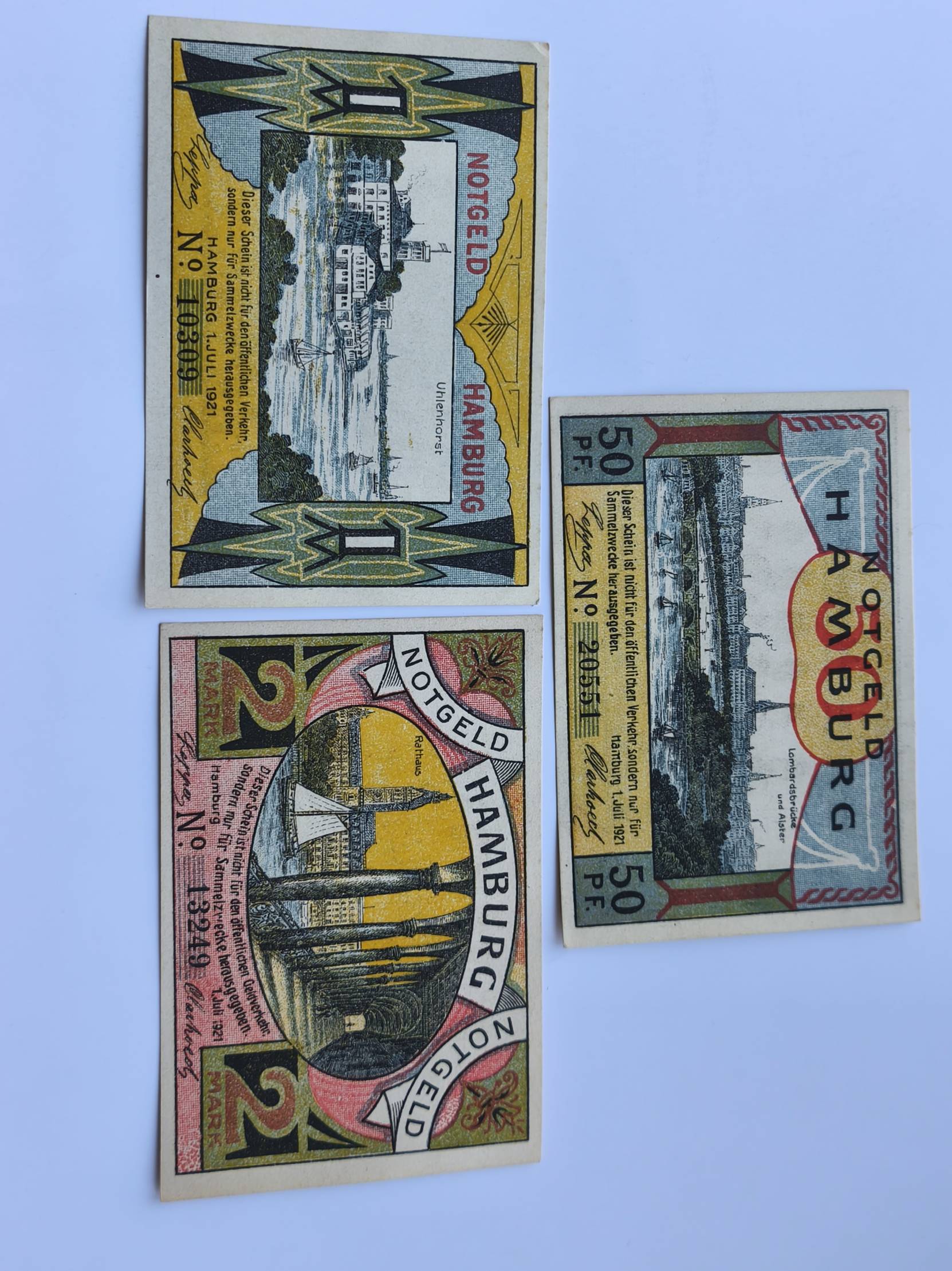 banknotas 3 vnt. notgeldas Hamburg Vokietija
