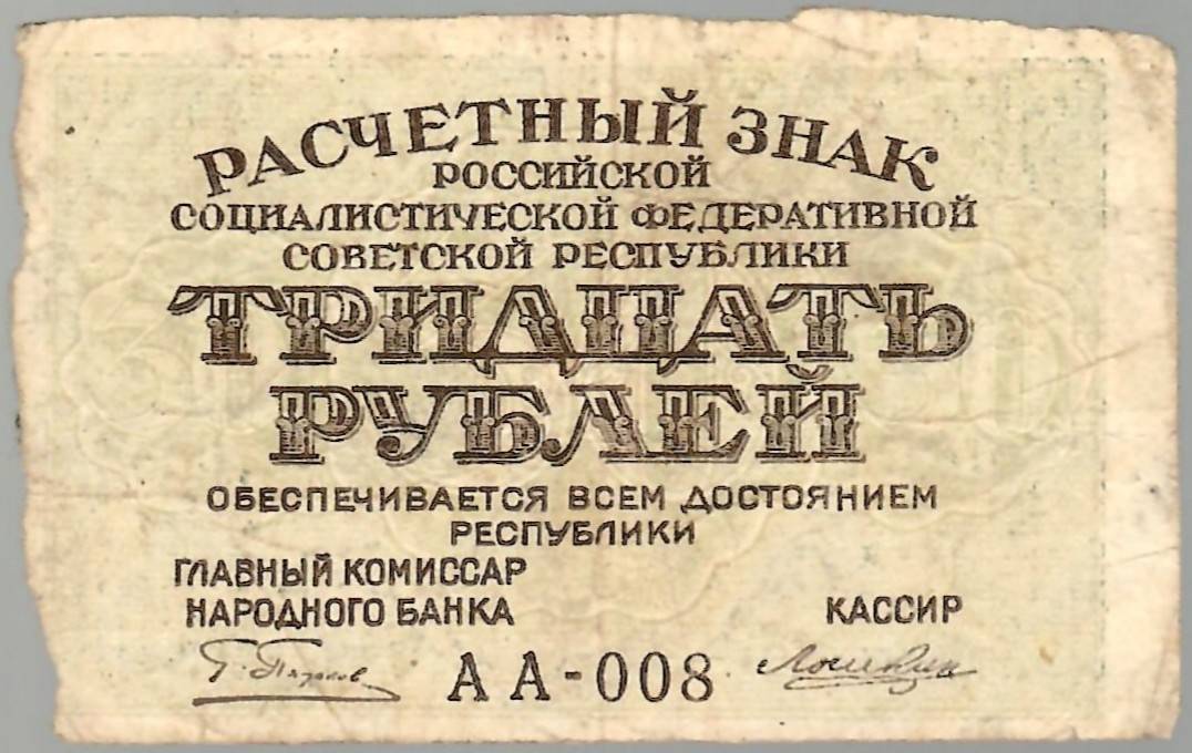 RSFSR 30 rubliu 1919 P99a(6) 4,00