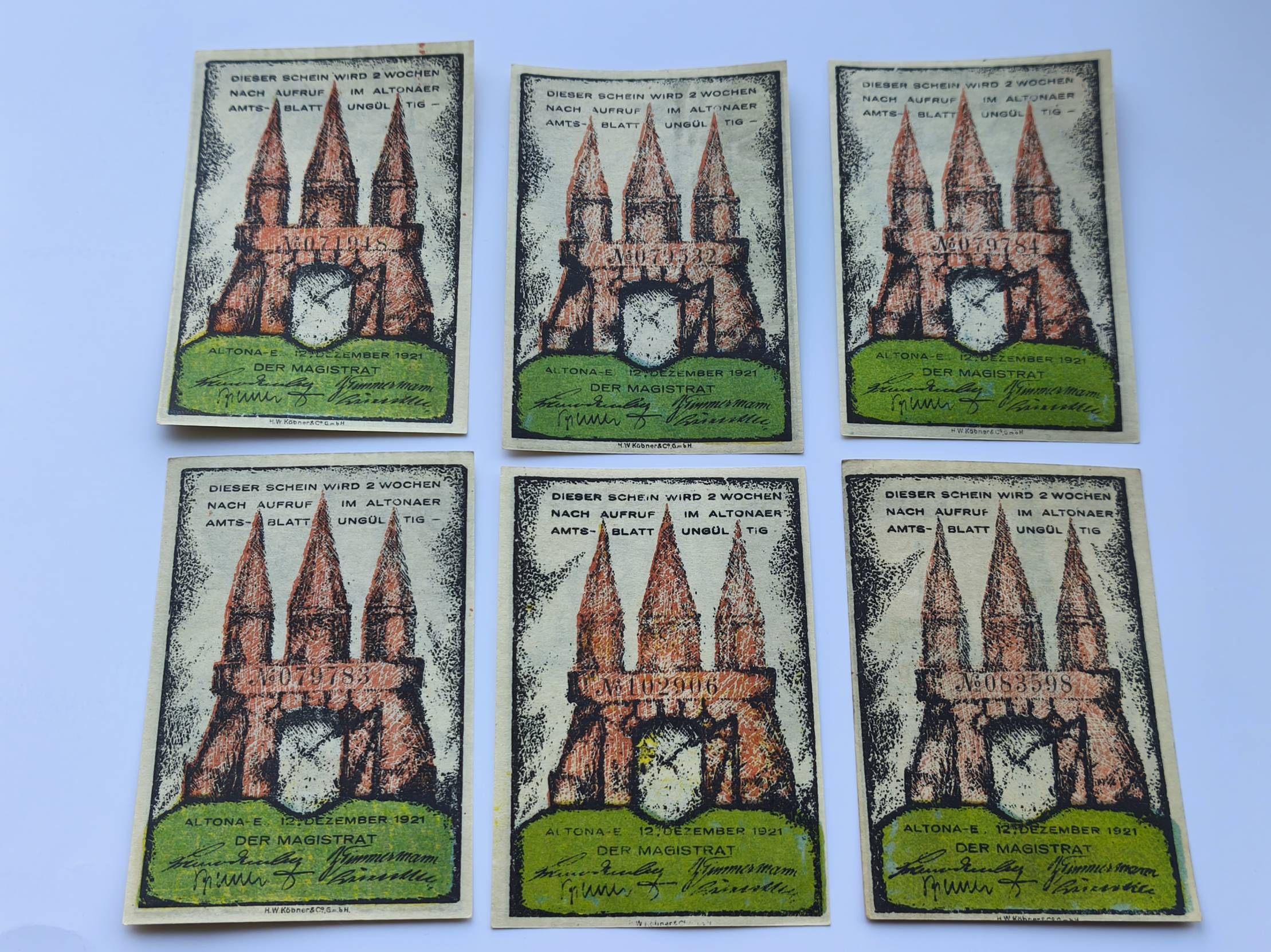 banknotas 6 vnt. notgeld Altona Vokietija