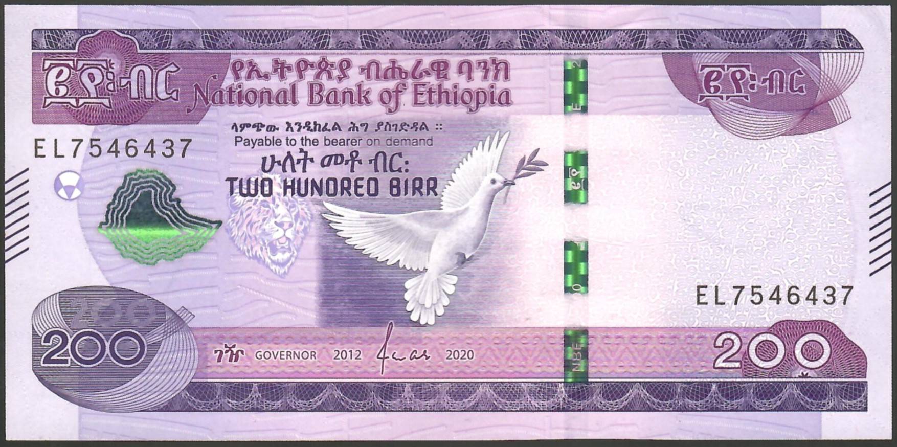 Etiopija 200 birr 2020 P58 7,00