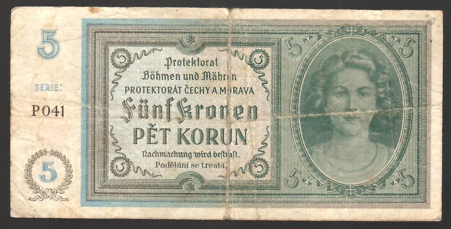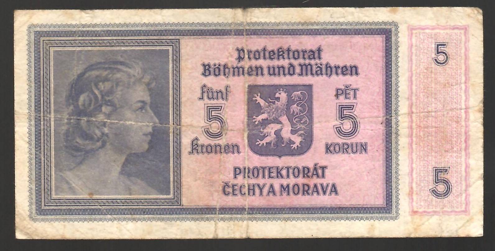 3Bohemia Moravia 5 korun 1940 P4 4,50