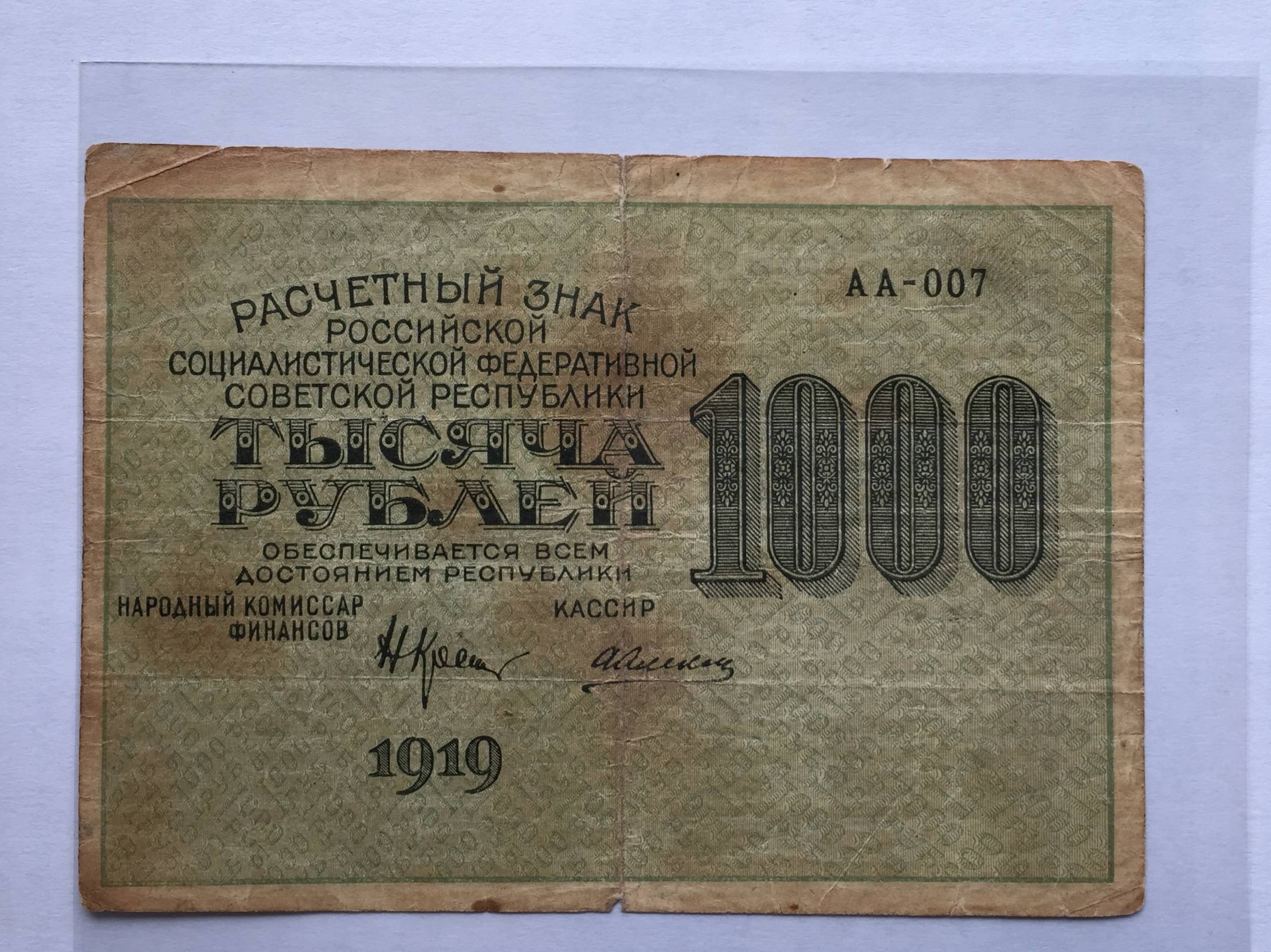 Rusija `1000 Rub.1919m. Nuo 1 euro
