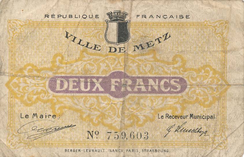 Prancuzija - Mecas - 1918 - 2 frankai - nuo euro