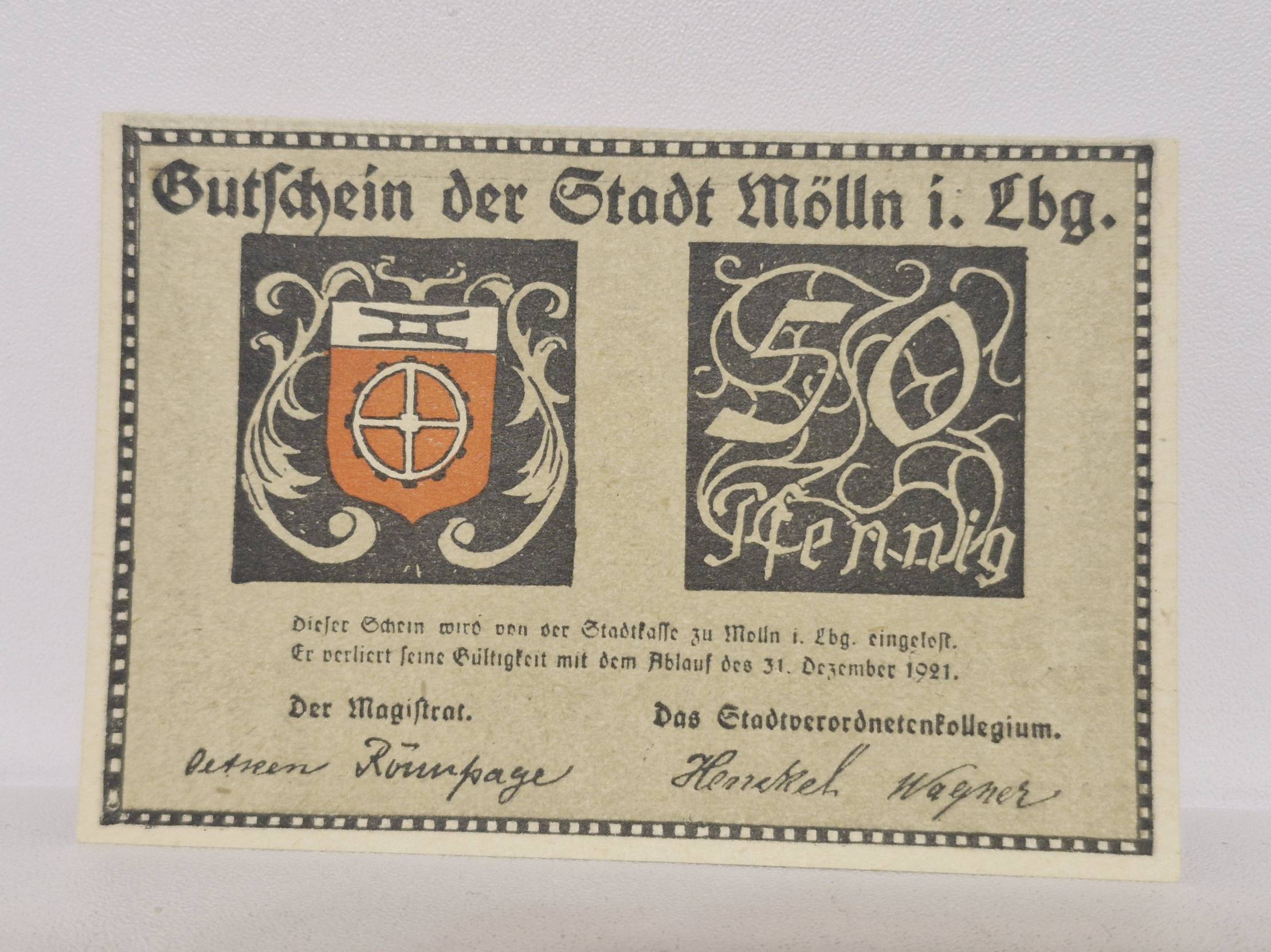 50 Pfennig 1921.12.31 Mölln Notgeld Vokietija
