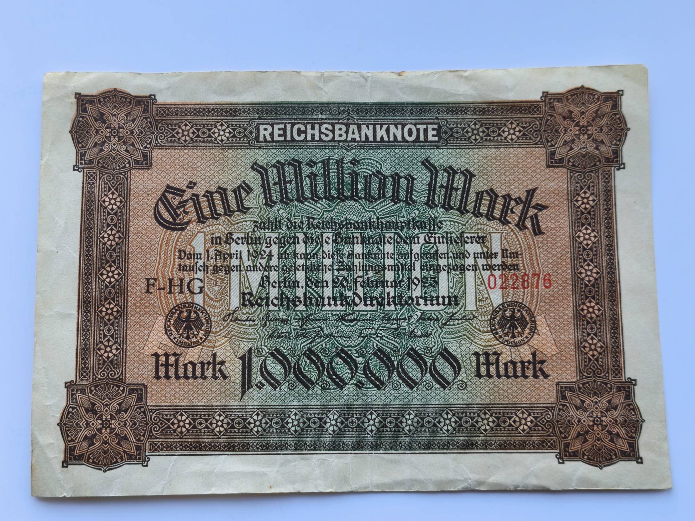 banknotas - 1923 m. 1 000 000 markių Vokietija Berlin