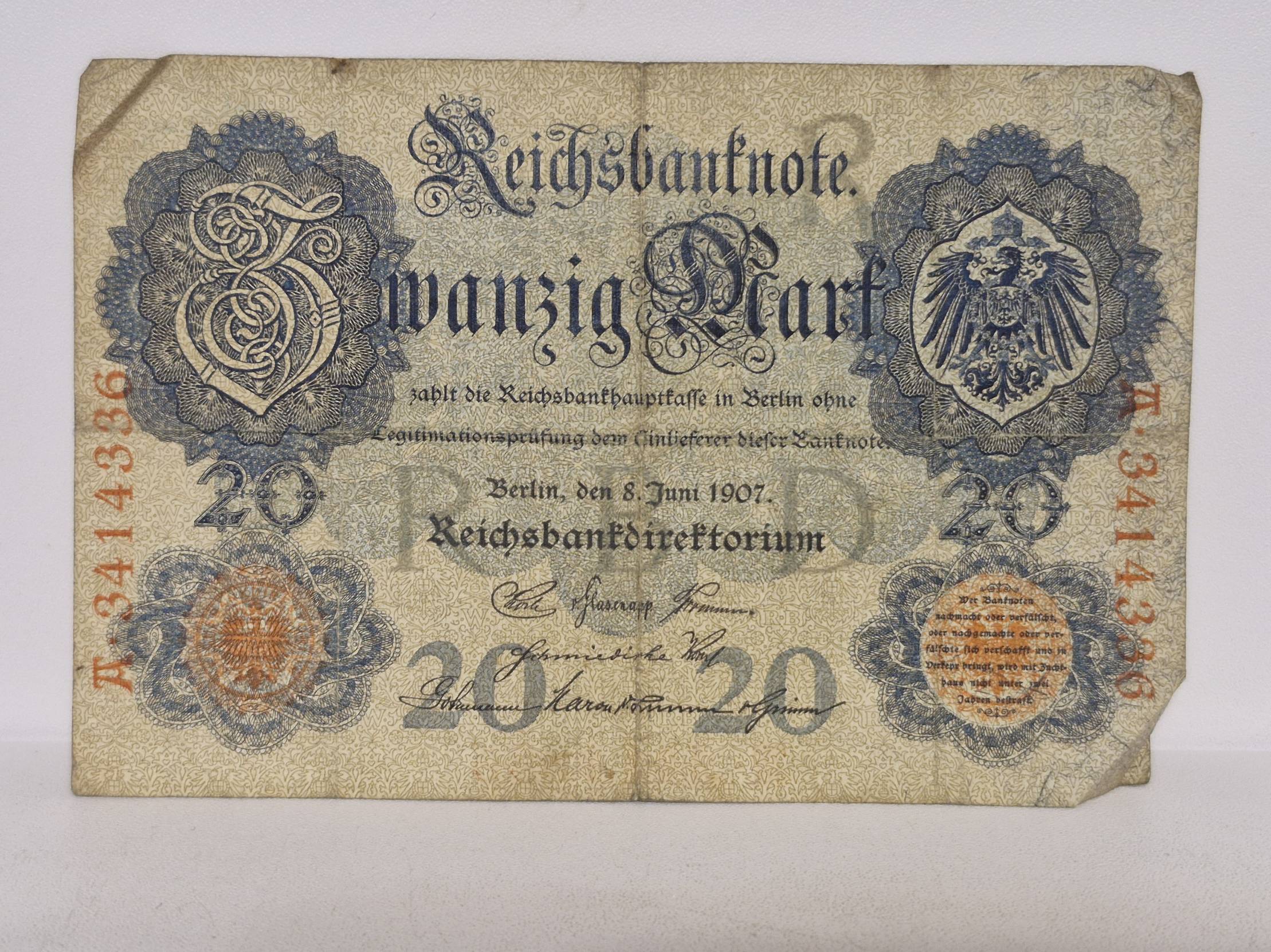 1907, Germany, reichsmark, 20