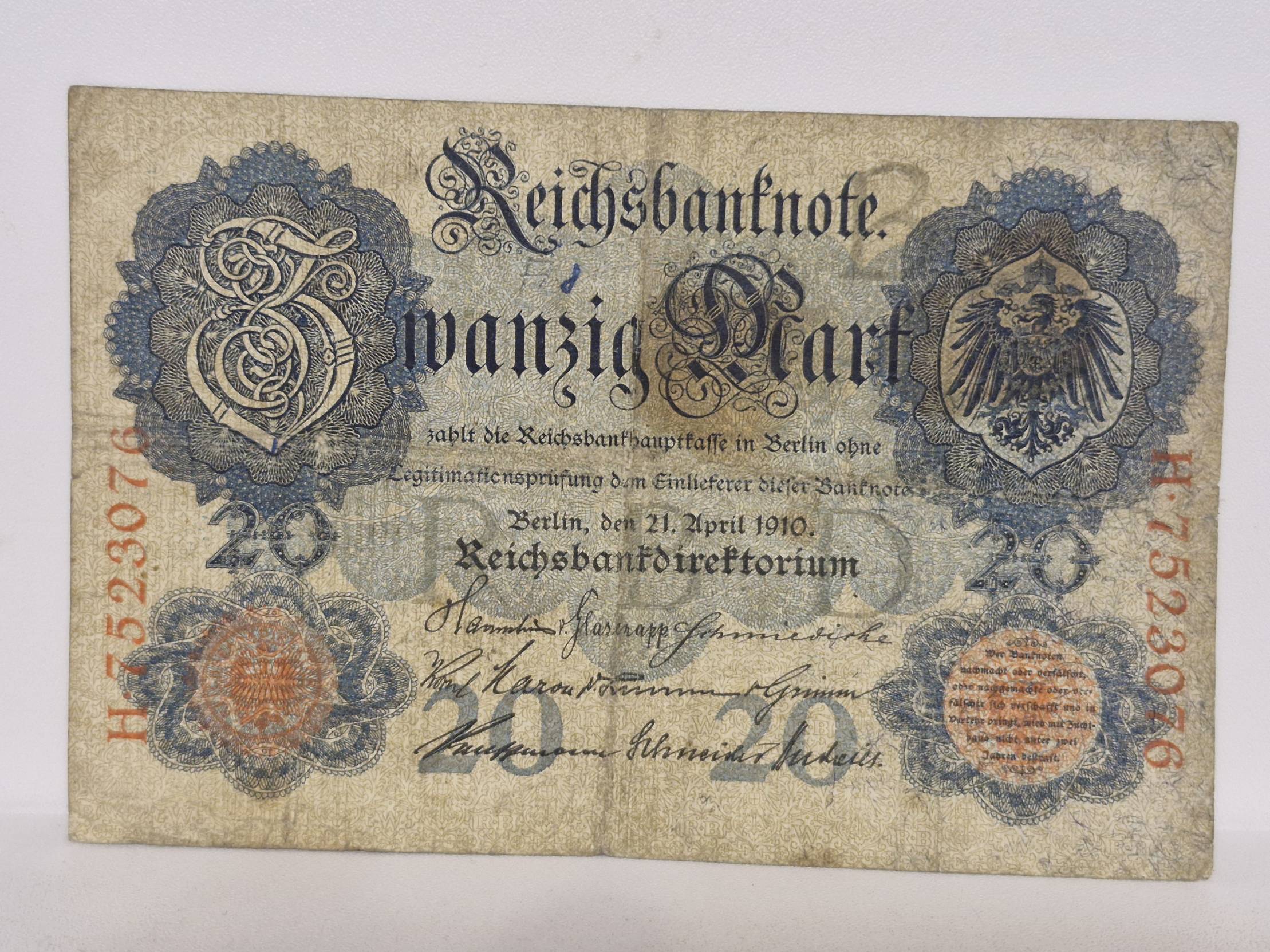 1910, Germany, reichsmark, 20