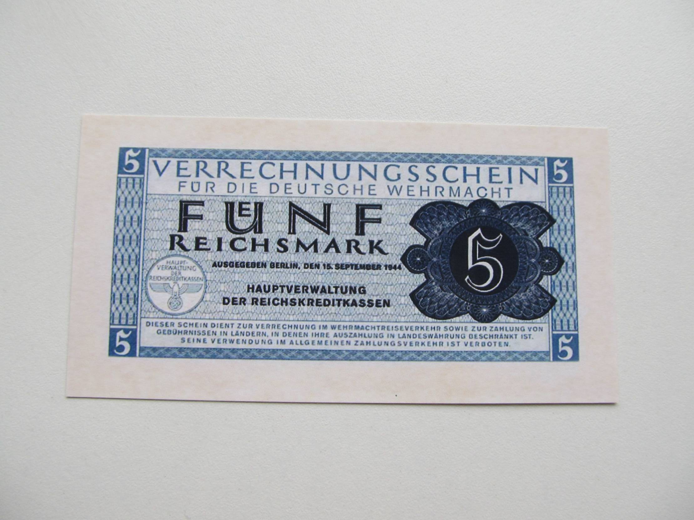 5 reichsmark , Vermacht Vokietija , 1944