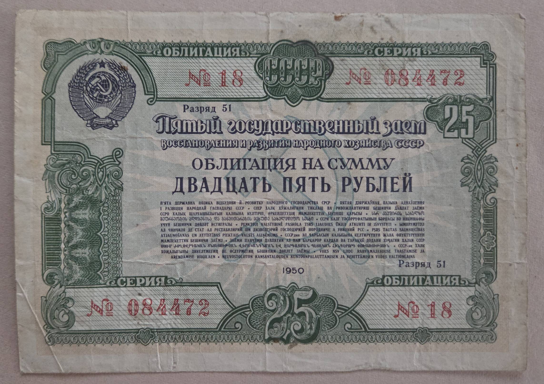 25 Rublių Obligacija 1950 m. TSRS - Nuo 1 Eur
