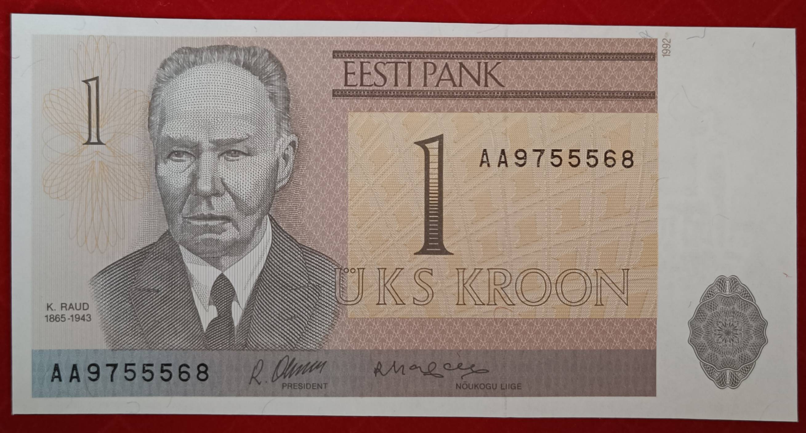 ESTONIA 1 Kroon 1992 m. P-69 UNC