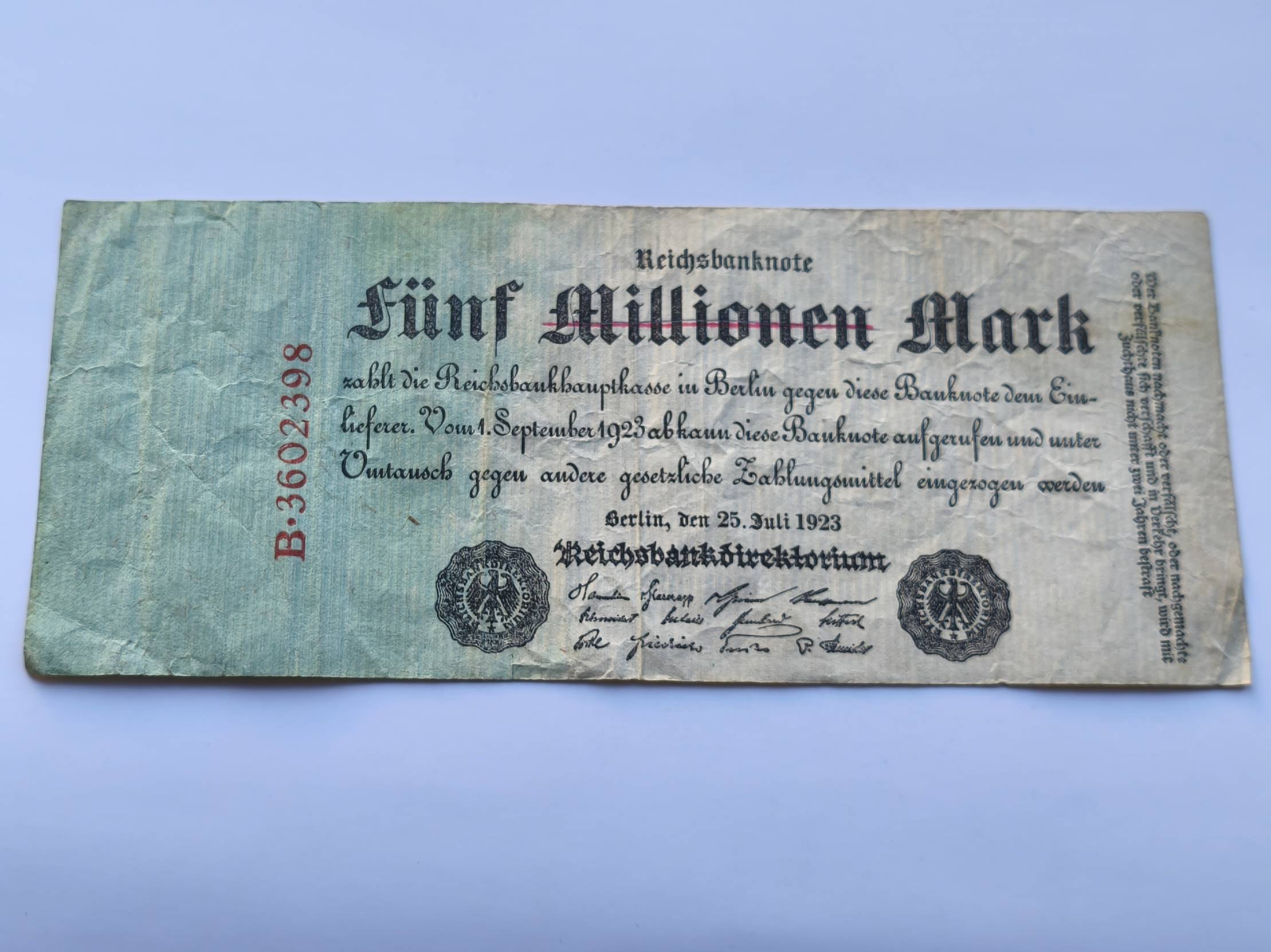 banknotas - 1923 m. 5 000 000 markių Vokietija