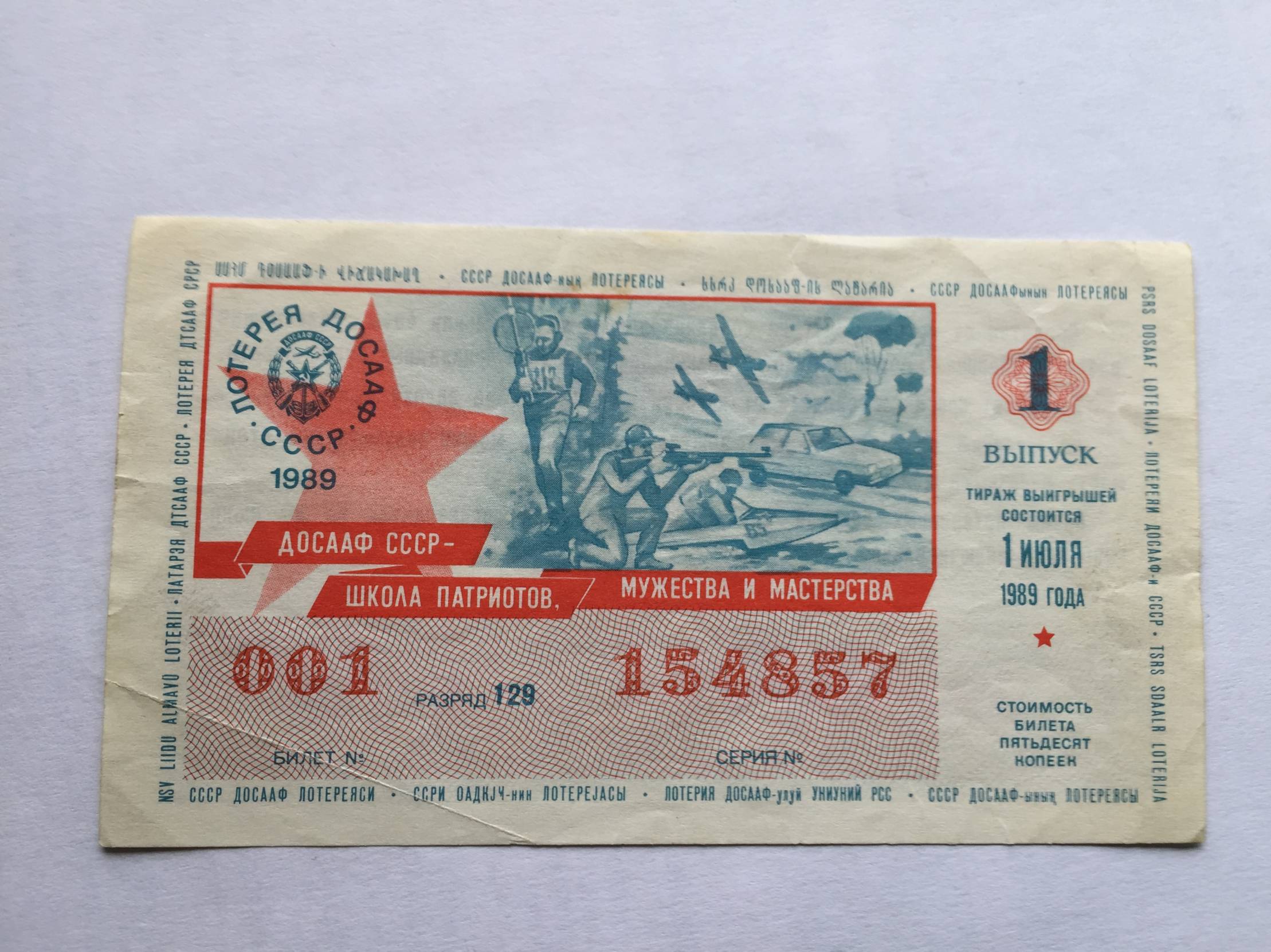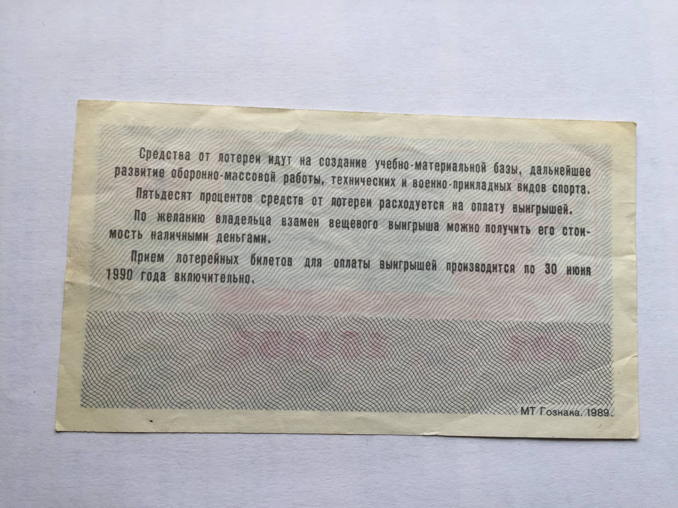 Rusija DOSAF Loterijos bilietas 1989m.