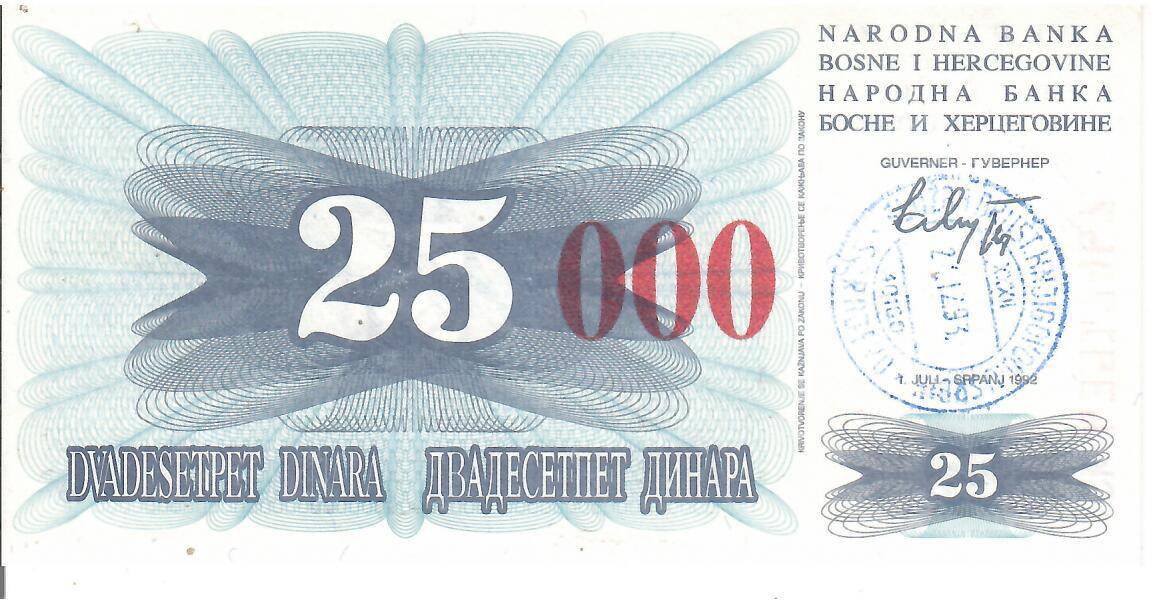 Bosnia-Herzegovina 25 000 Dinara 1993 UNC