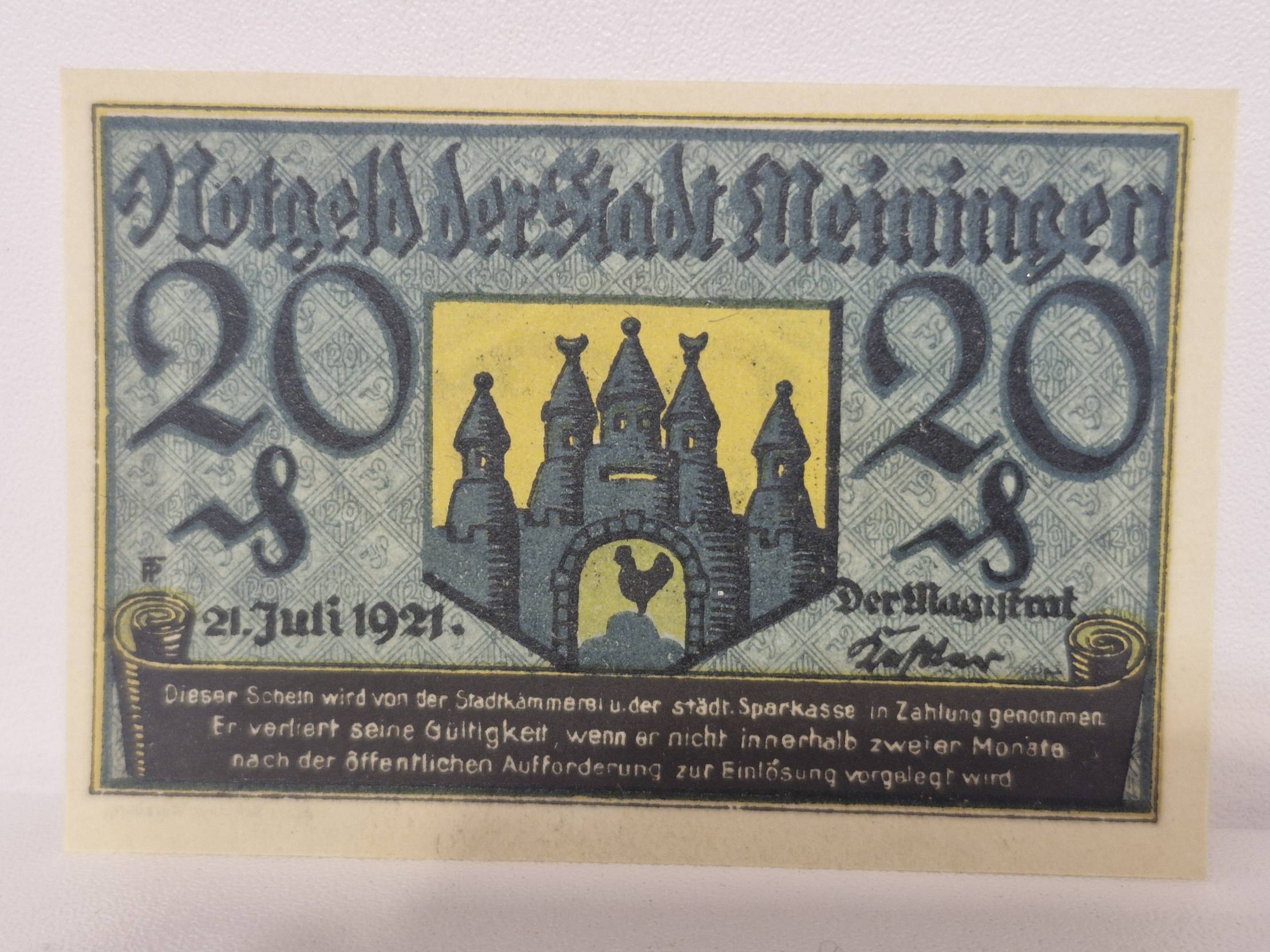 20 Pfennig 1921.07.21 Meiningen Notgeld Vokietija