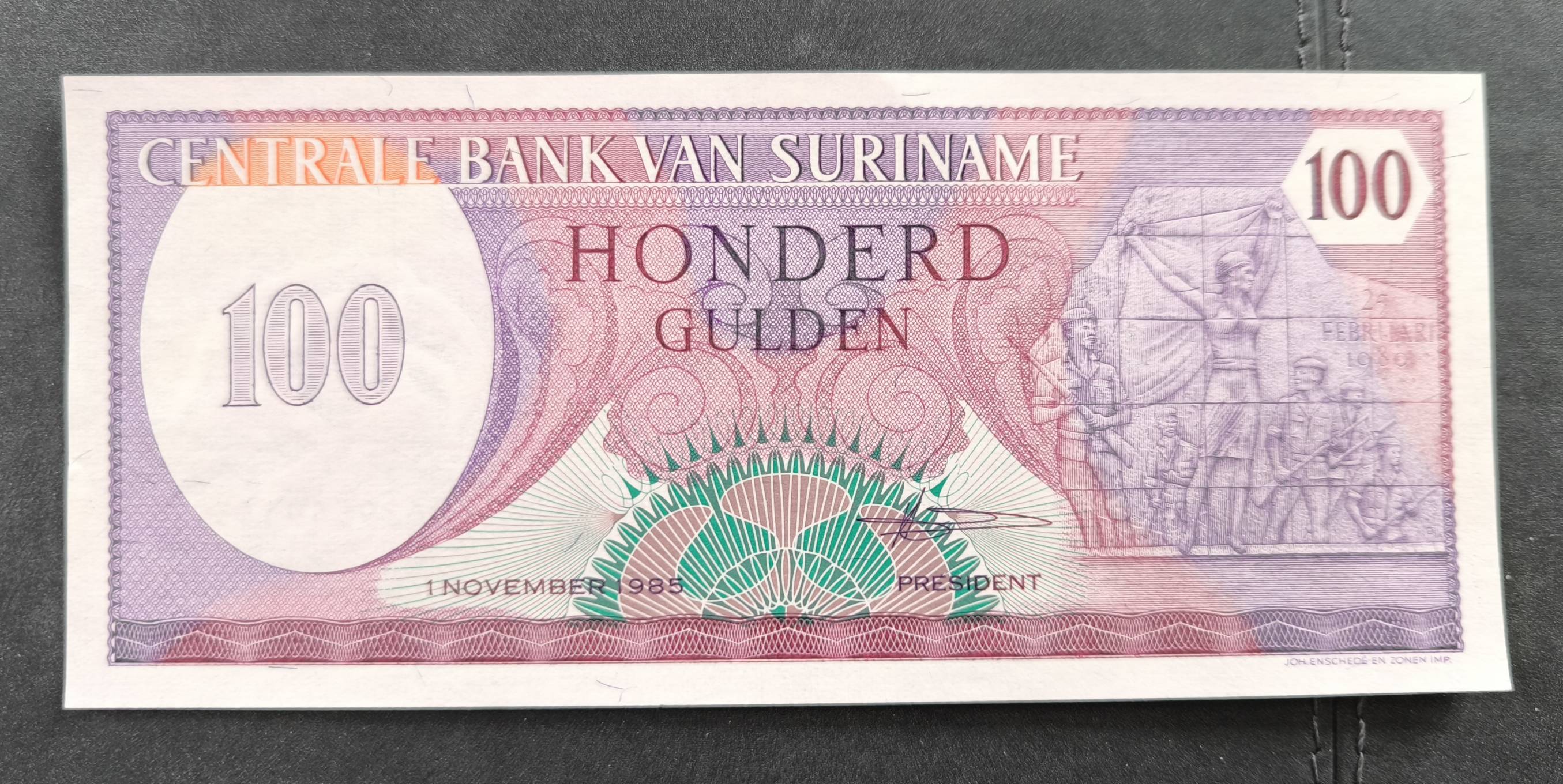 Suriname. 100 gulden. 1985m. Unc