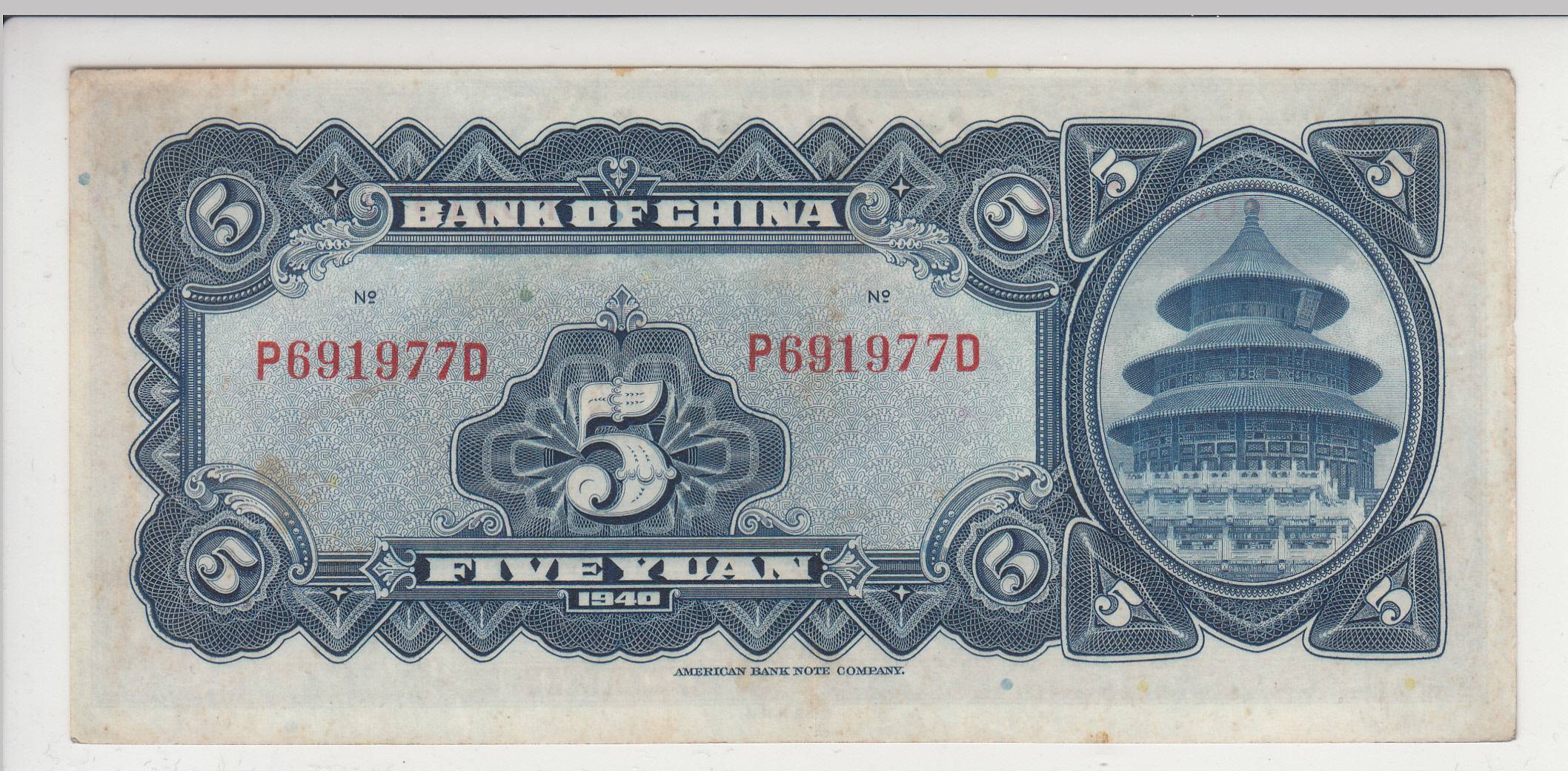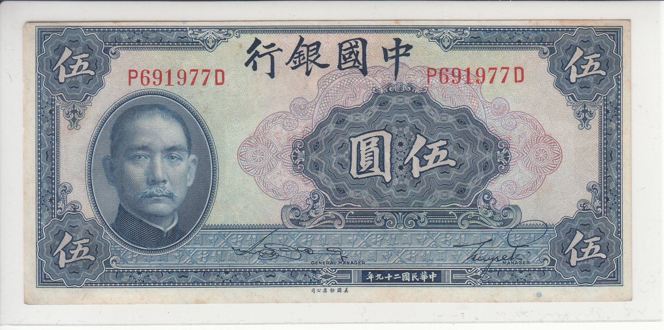 Kinija_5 juaniai_1940m_nuo 1€ !