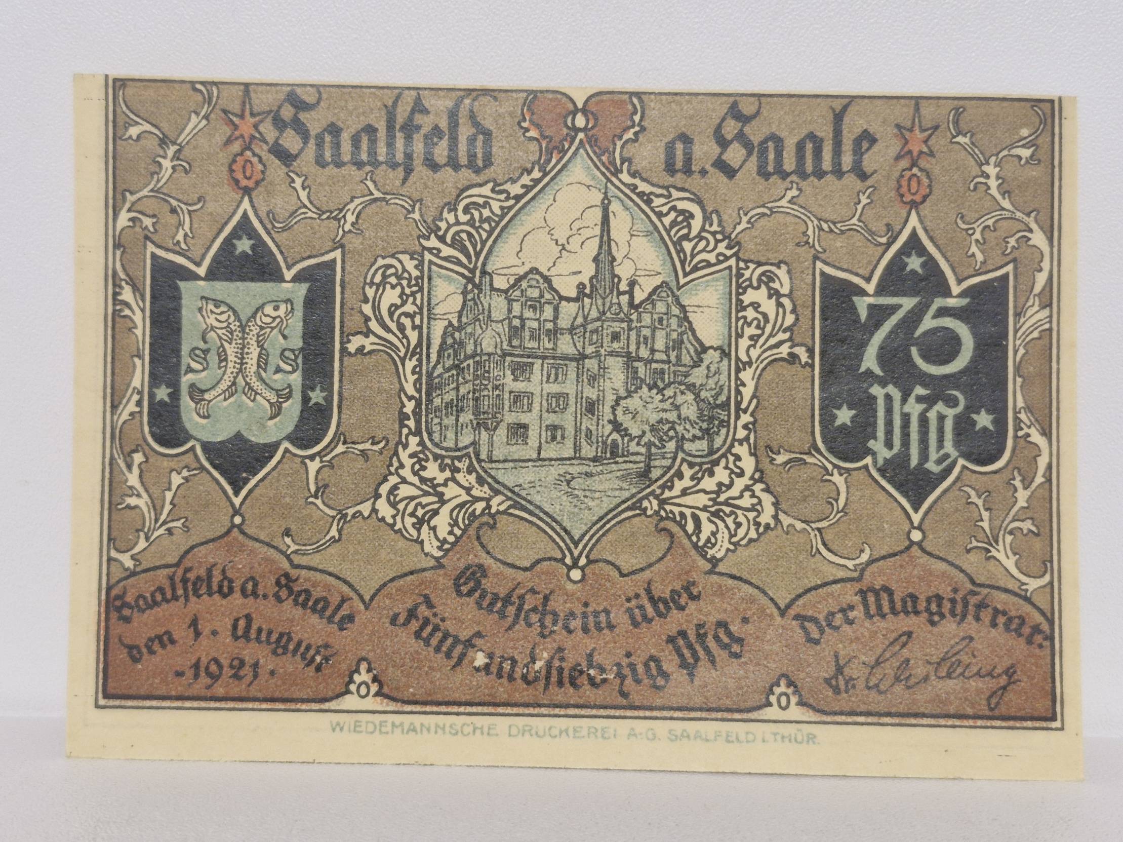 75 Pfennig 1921.08.01 Saalfeld a Saale Notgeld