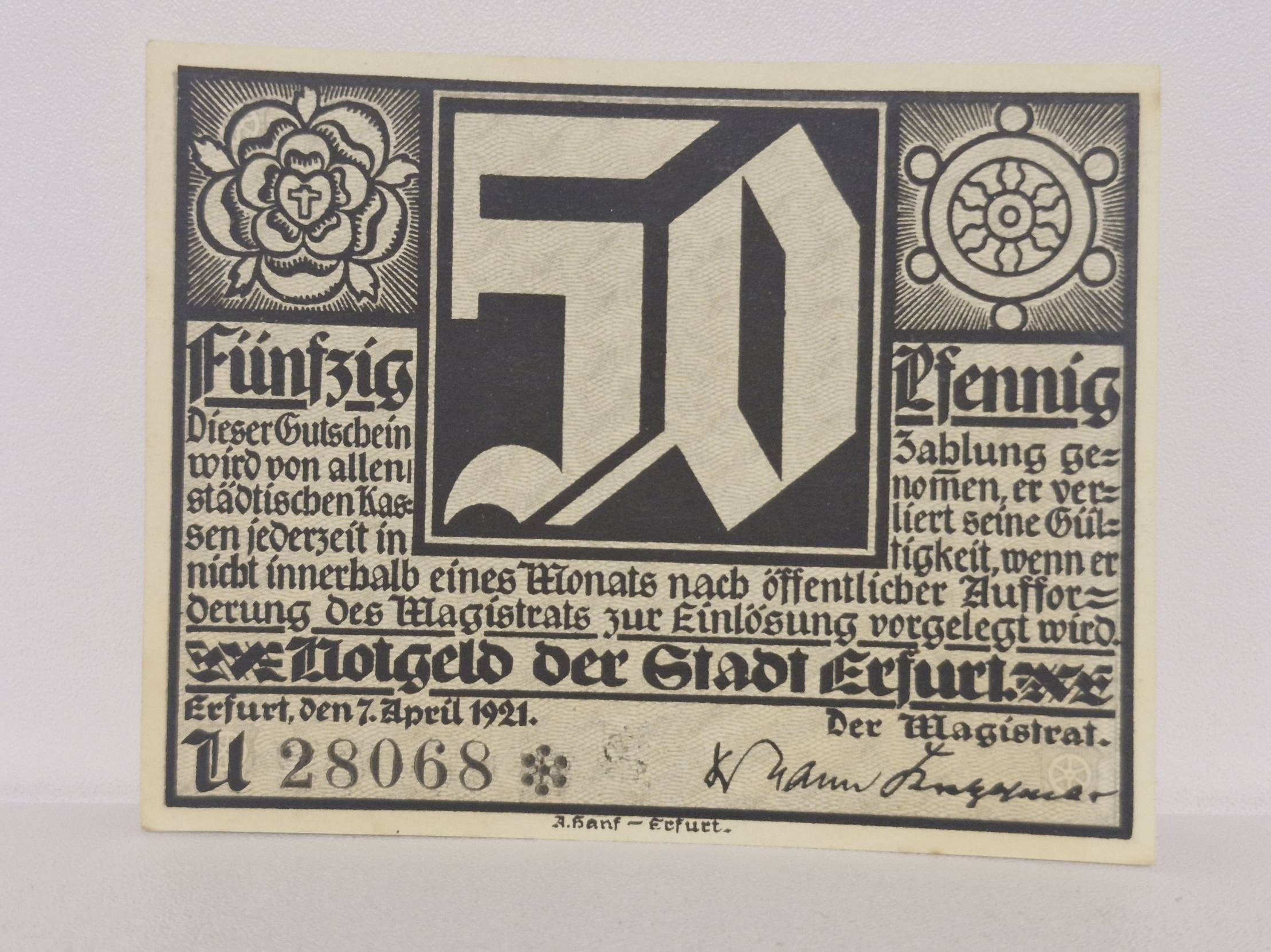 50 Pfennig 1921.04.07 Erfurt Notgeld Vokietija