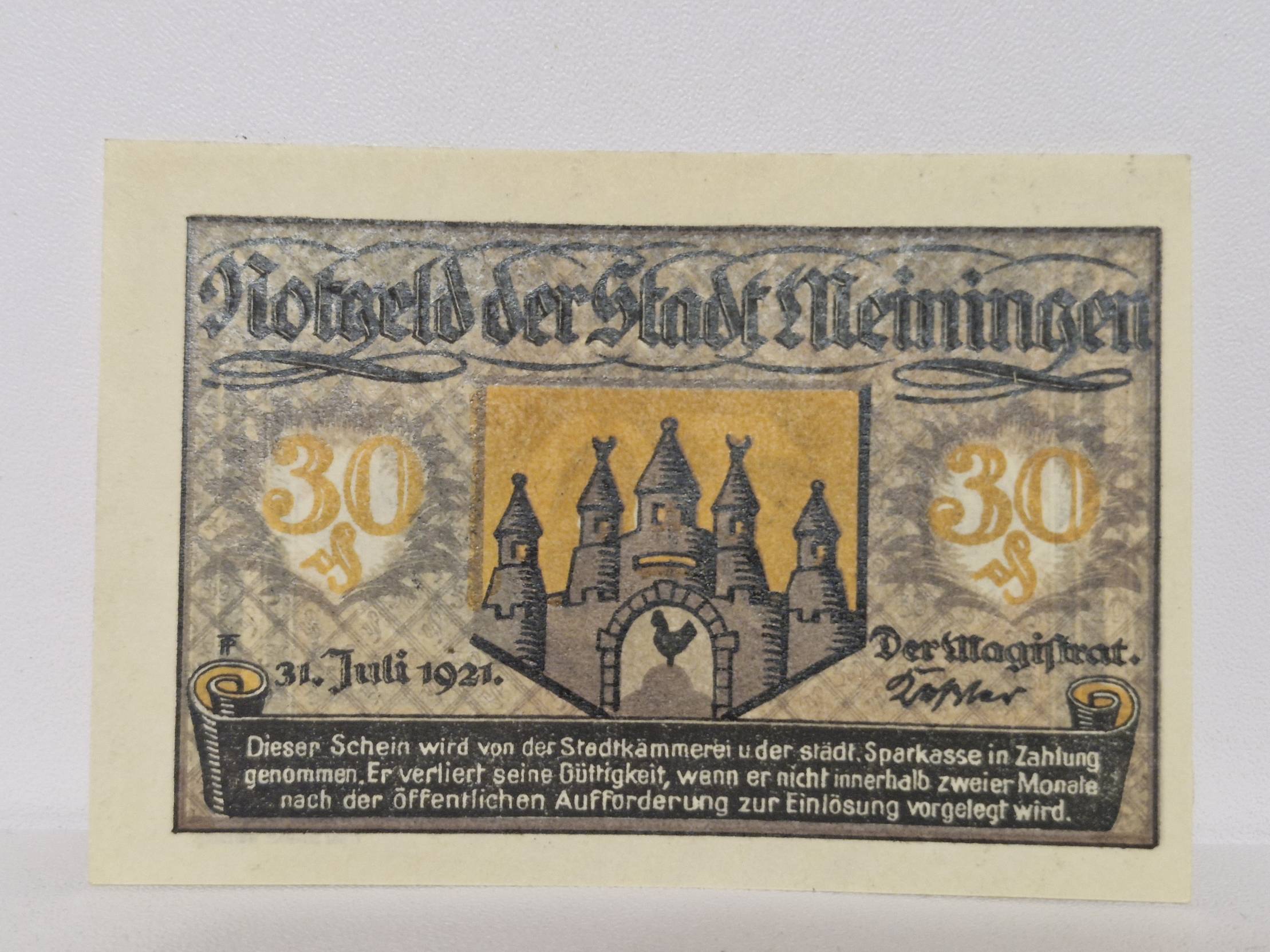 30 Pfennig 1921.07.31 Meiningen Notgeld Vokietija
