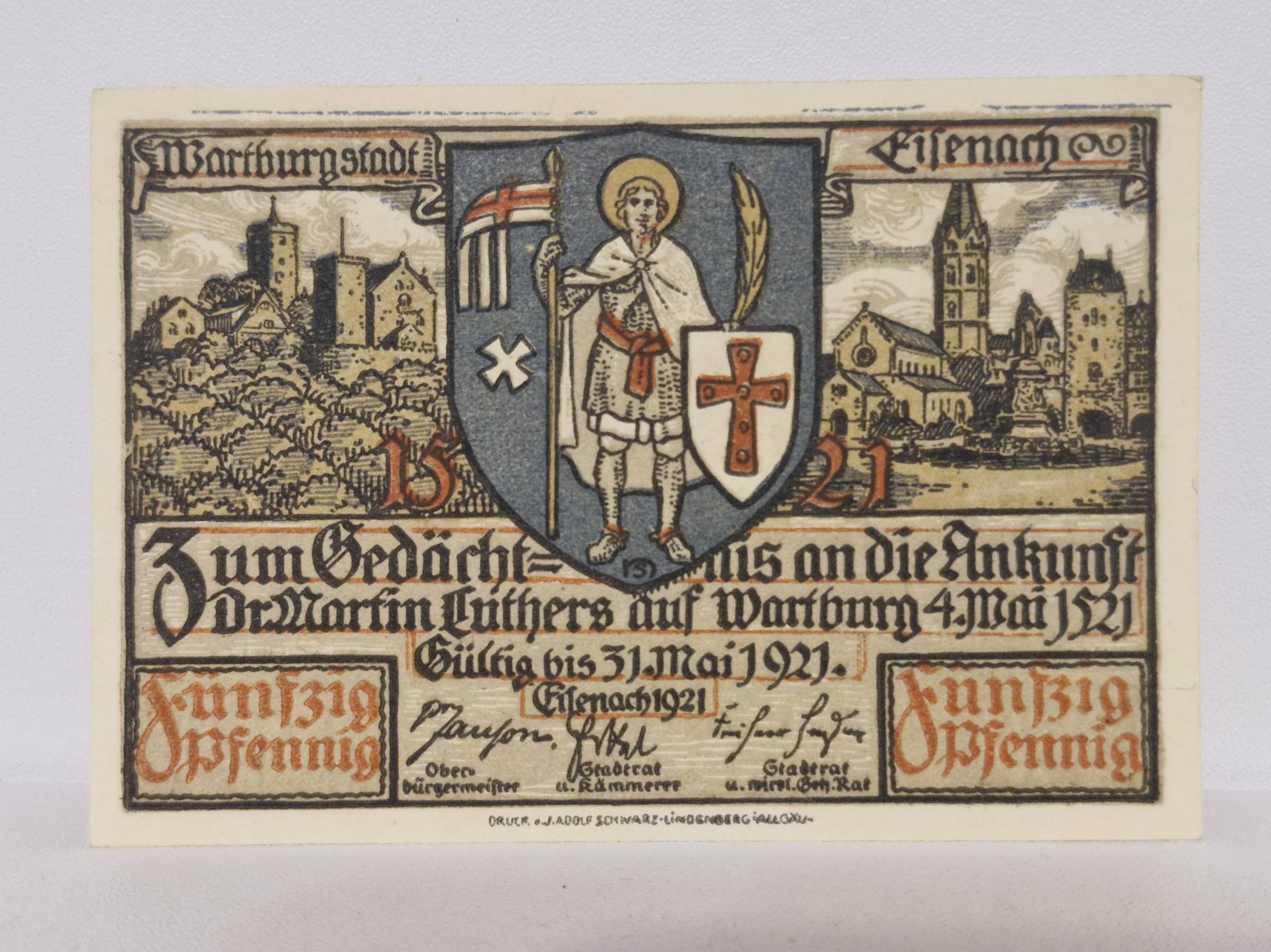 50 Pfennig 1921 Eisenach Notgeld Vokietija