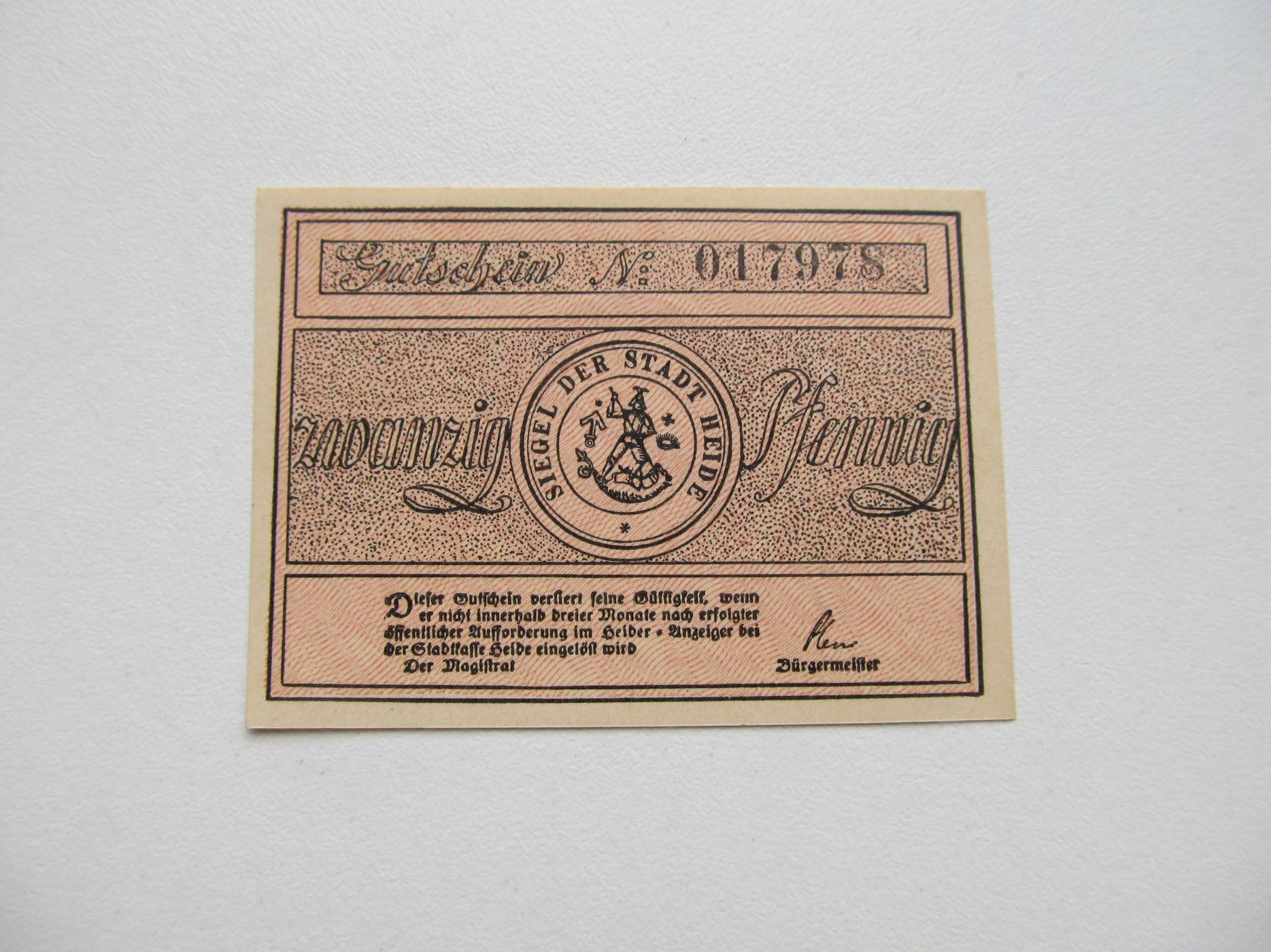 Notgeldas 20 pfennig , Heide , Vokietija