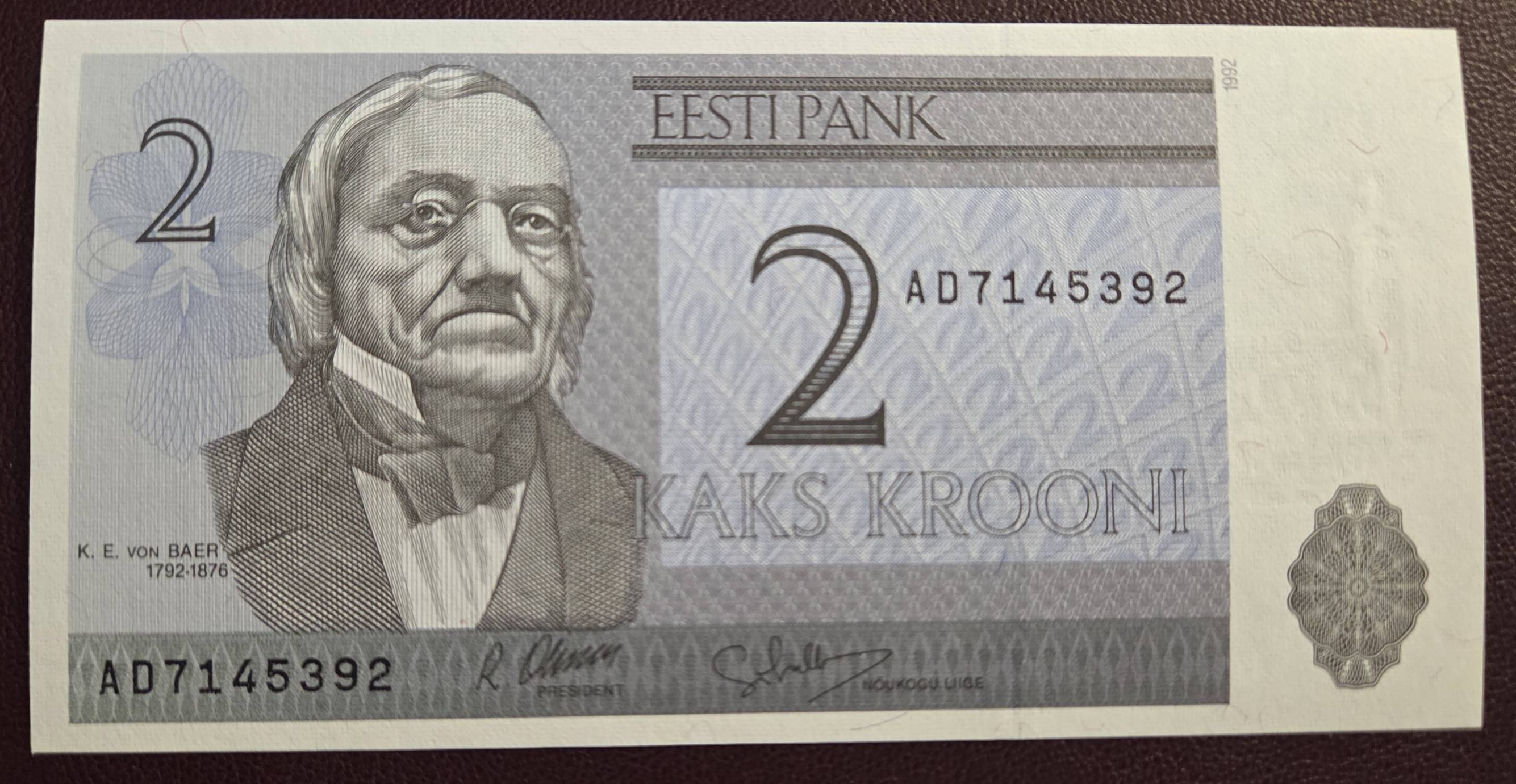 2 Kronos 1992 m. UNC Estija - Nuo 1 Eur
