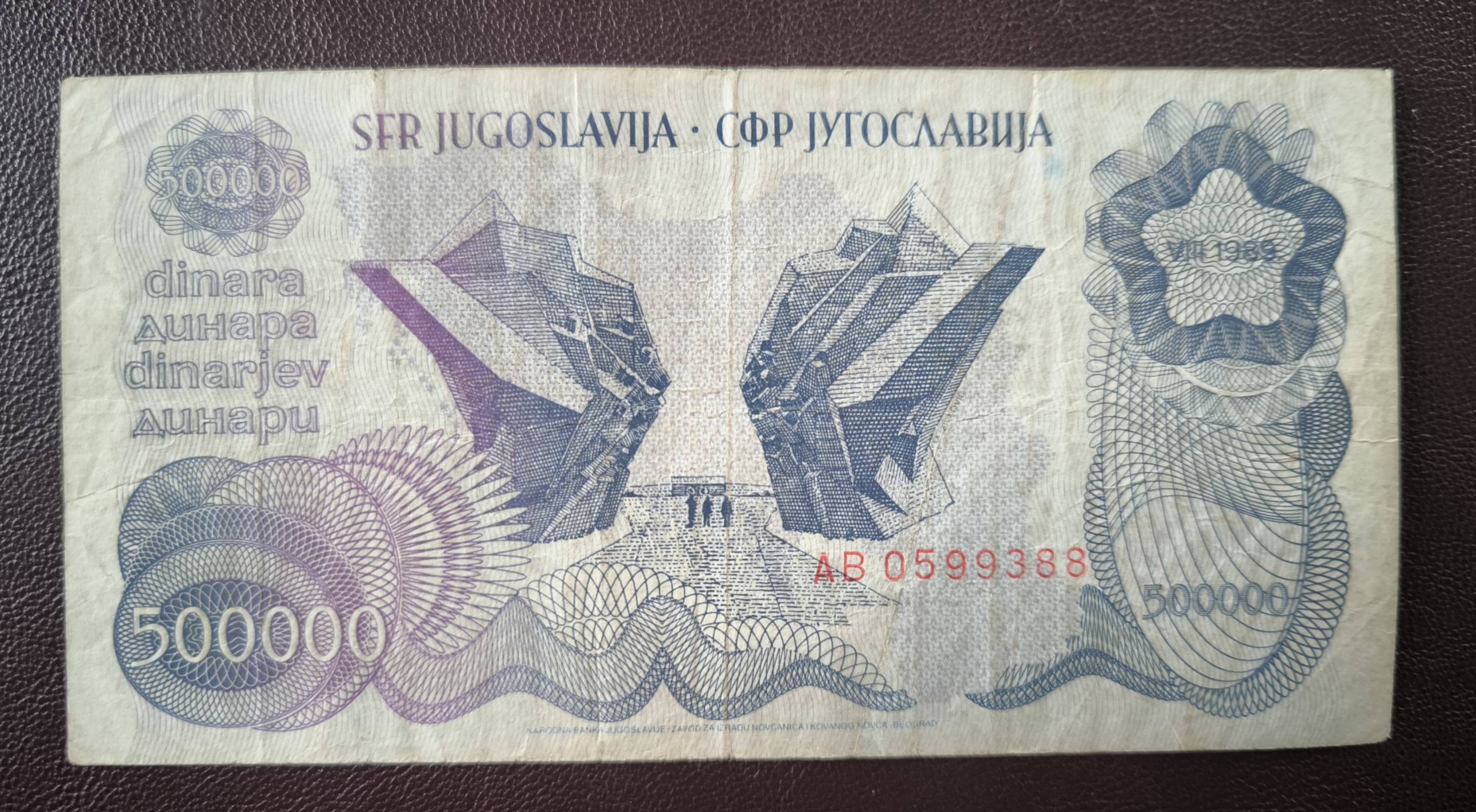Yugoslavia. 500000 dinara. 1989m.