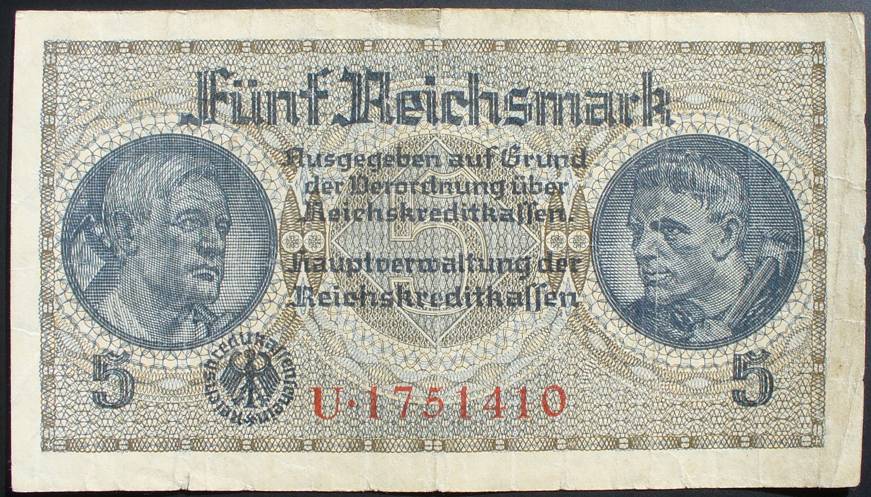 Vokietija 1940-1945 5 Reichsmark PR138a......9027
