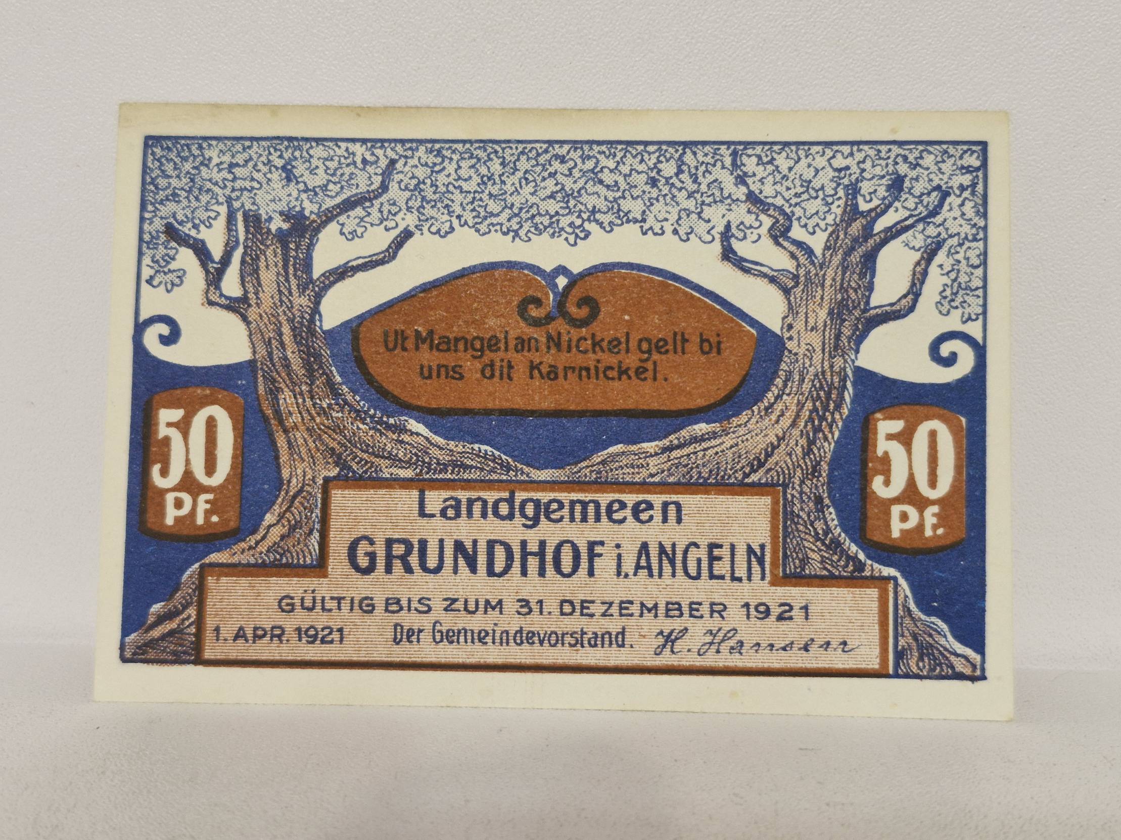50 Pfennig 1921.04.01 Grundhof in Angeln Notgeld