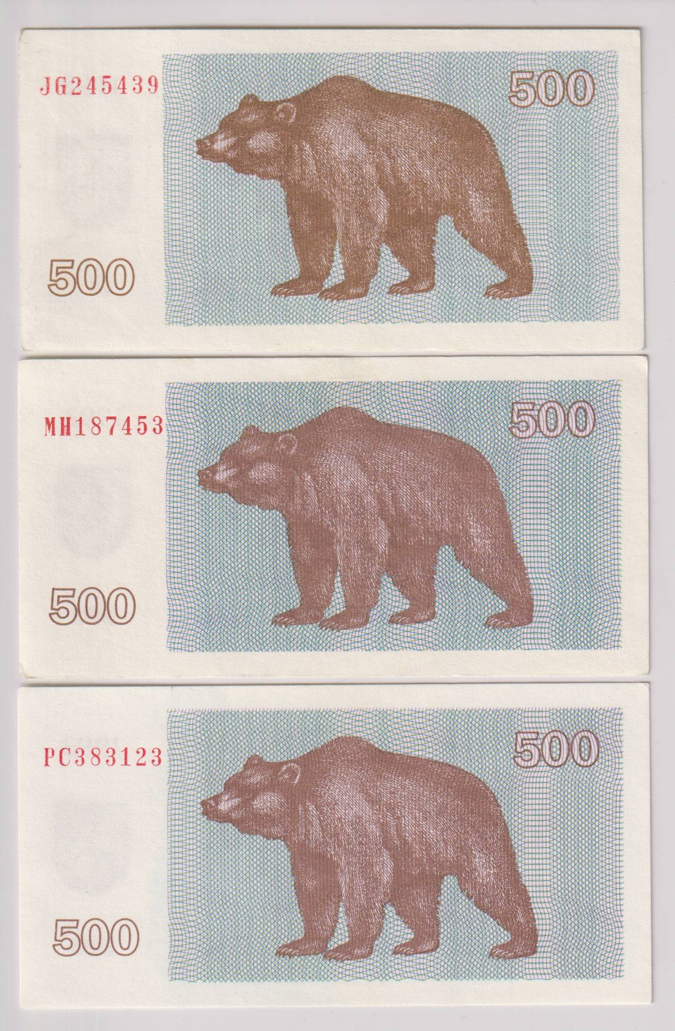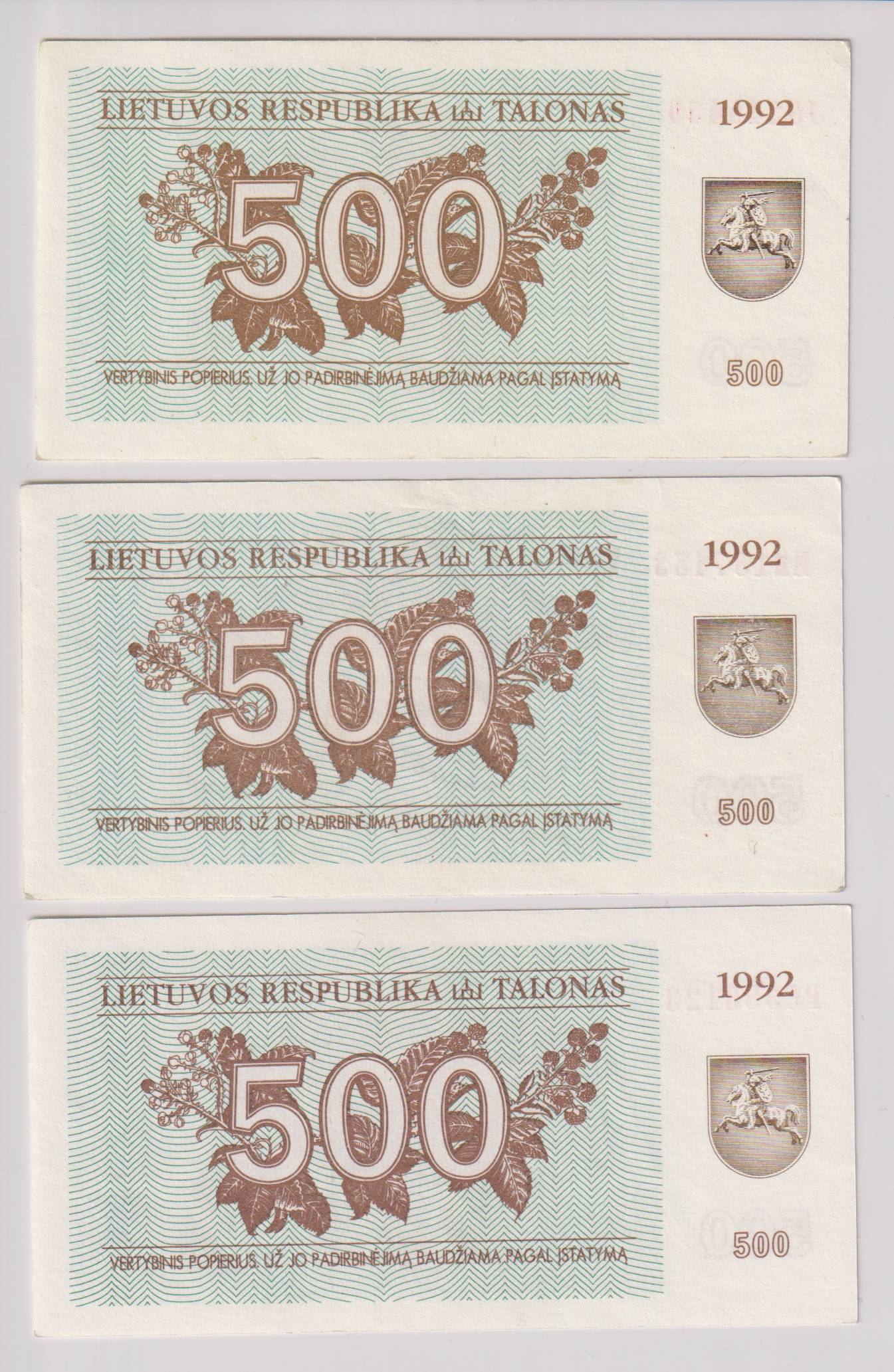 Lietuva_3 x 500 talonų_1992m_nuo 1€ !