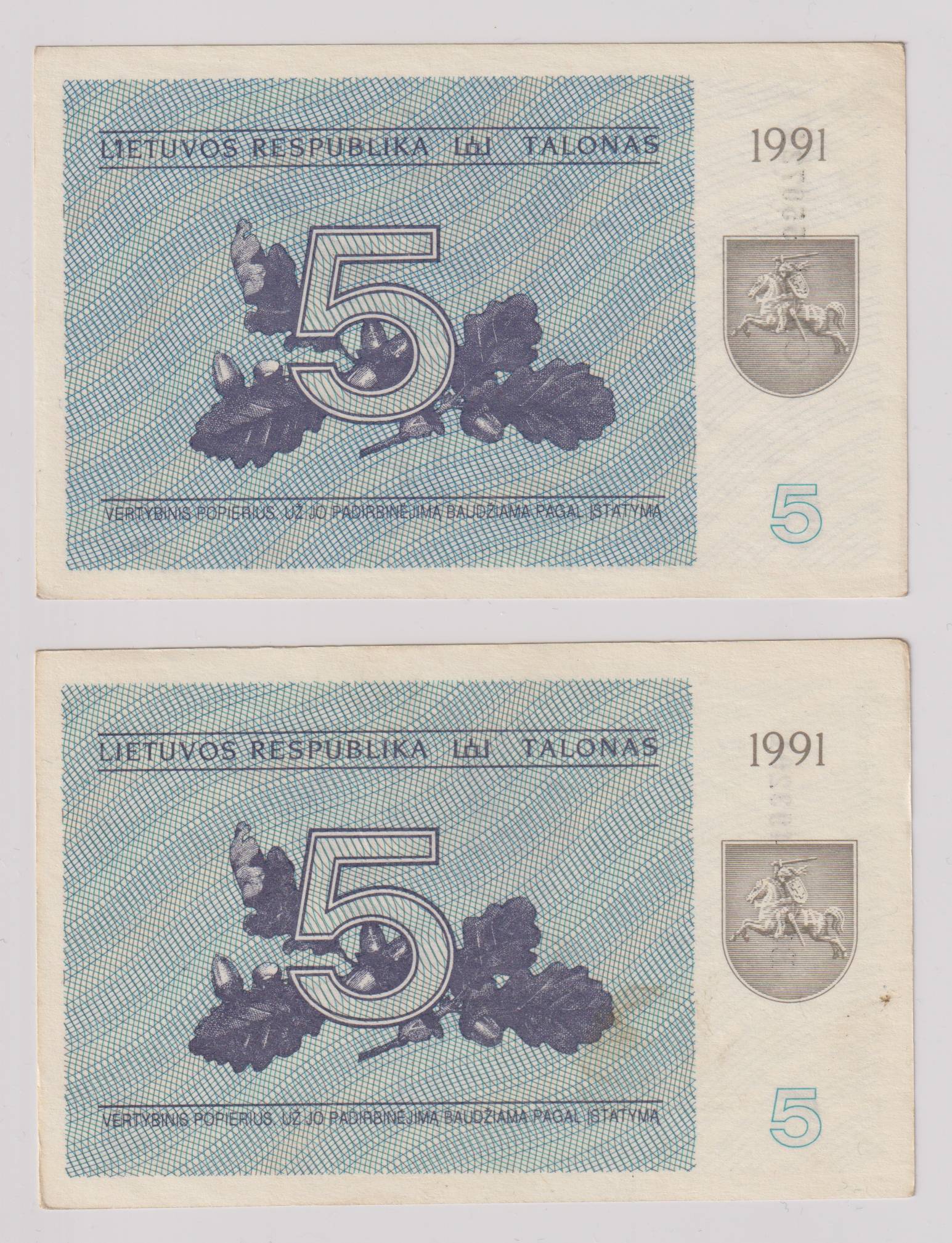 Lietuva_2 x 5 talonai_1991m_nuo 1€ !