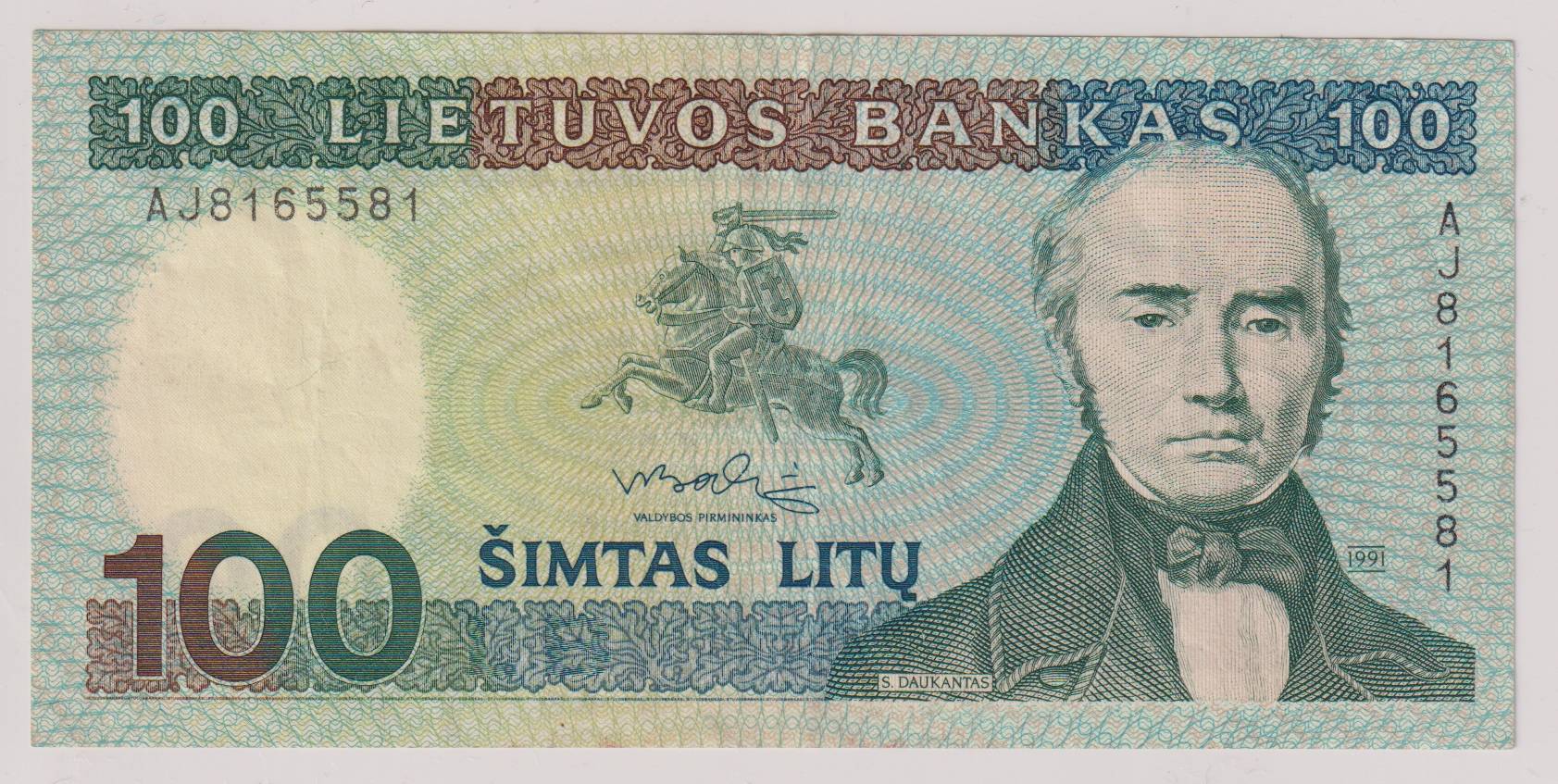 Lietuva_100 litų_1991m_vf+_nuo 1€ !